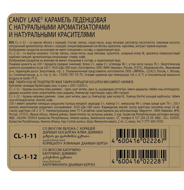 | Состав | Патока, сахар-песок, вода питьевая, регулятор кислотности: лимонная кислота; краситель поверхностный карбон, натуральные сливки, кофе. |