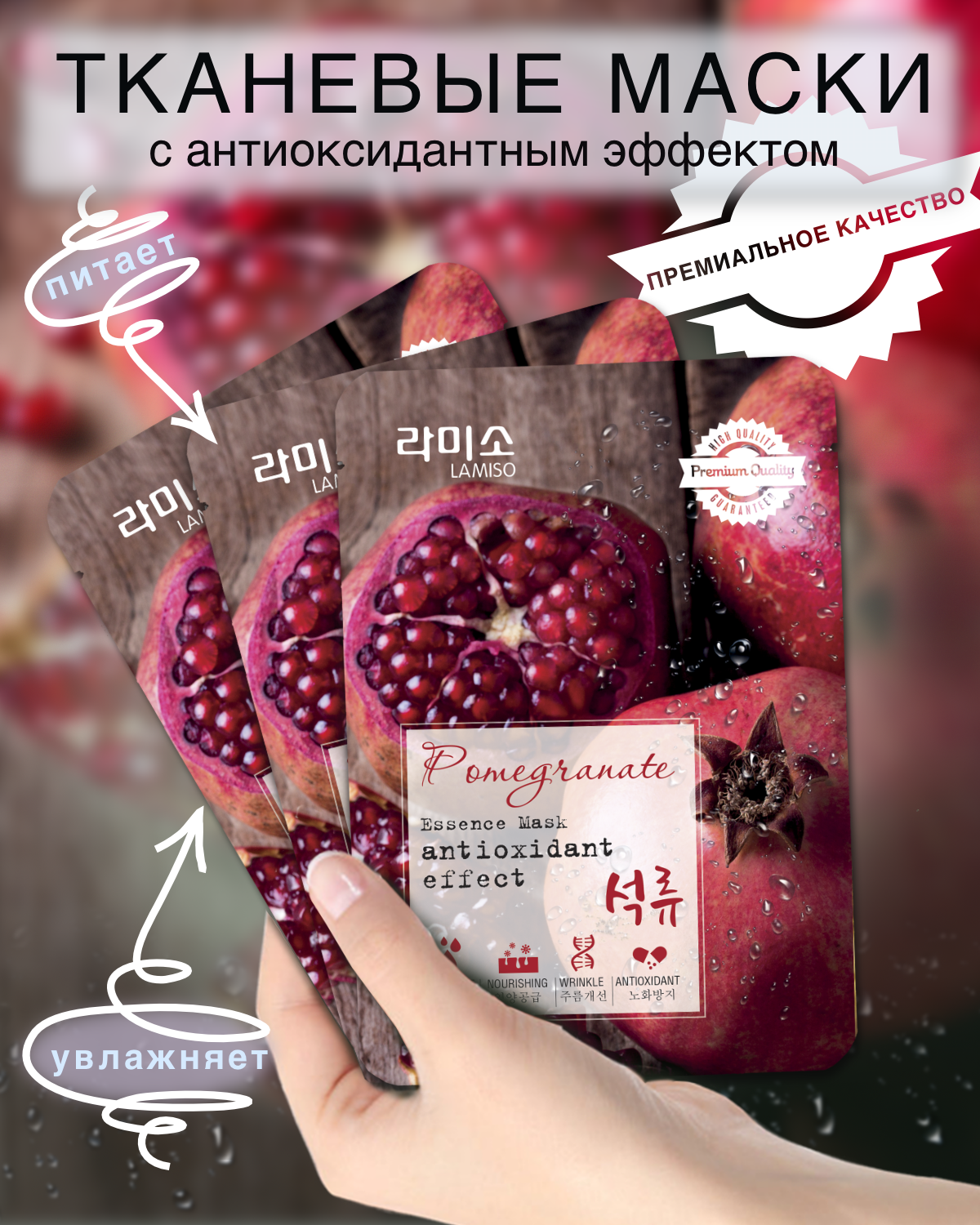 Маска для лица La Miso С экстрактом граната стимулирует синтез коллагена, улучшает микроциркуляцию, обладает выраженным антиоксидантным действием, увлажняет, смягчает и выравнивает кожу, предотвращая преждевременное старение.