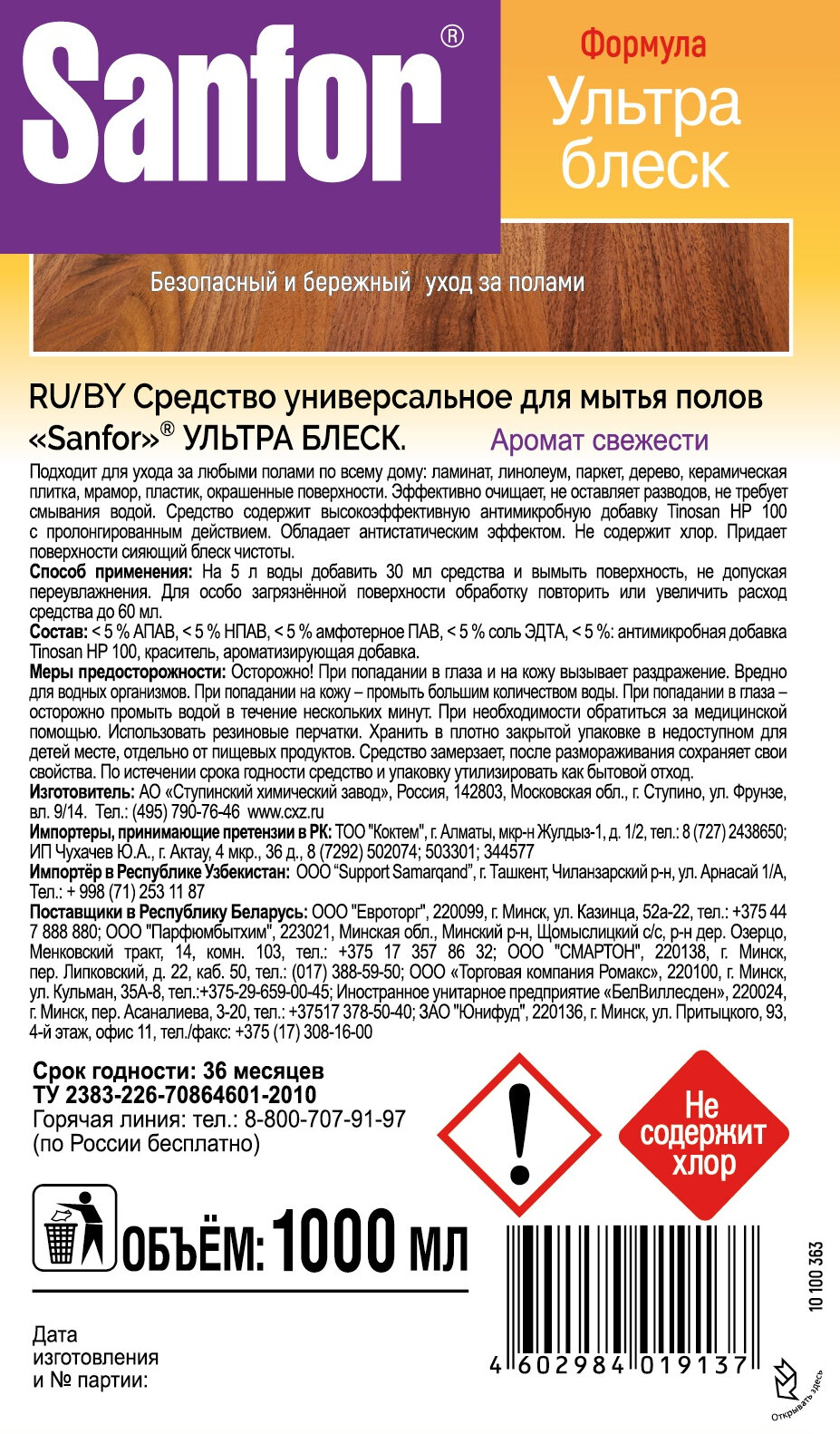 Сервис сравнения цен СкидкаГИД предлагает сравнить цены на товар «Средство чистящее Sanfor Забота о доме для мытья полов 1л»