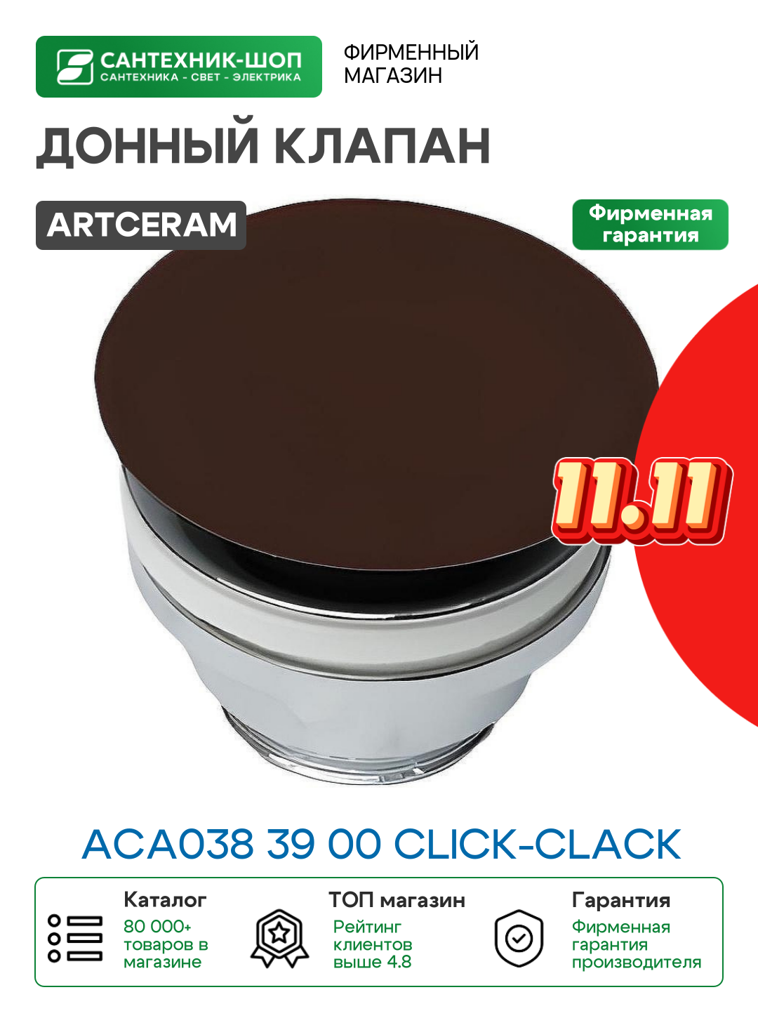 На сегодняшний день товар «Донный клапан Artceram ACA038 39 00 click-clack Cocoa» можно купить с кешбеком в 2 магазинах: Santehnika-room, Сантехника Тут