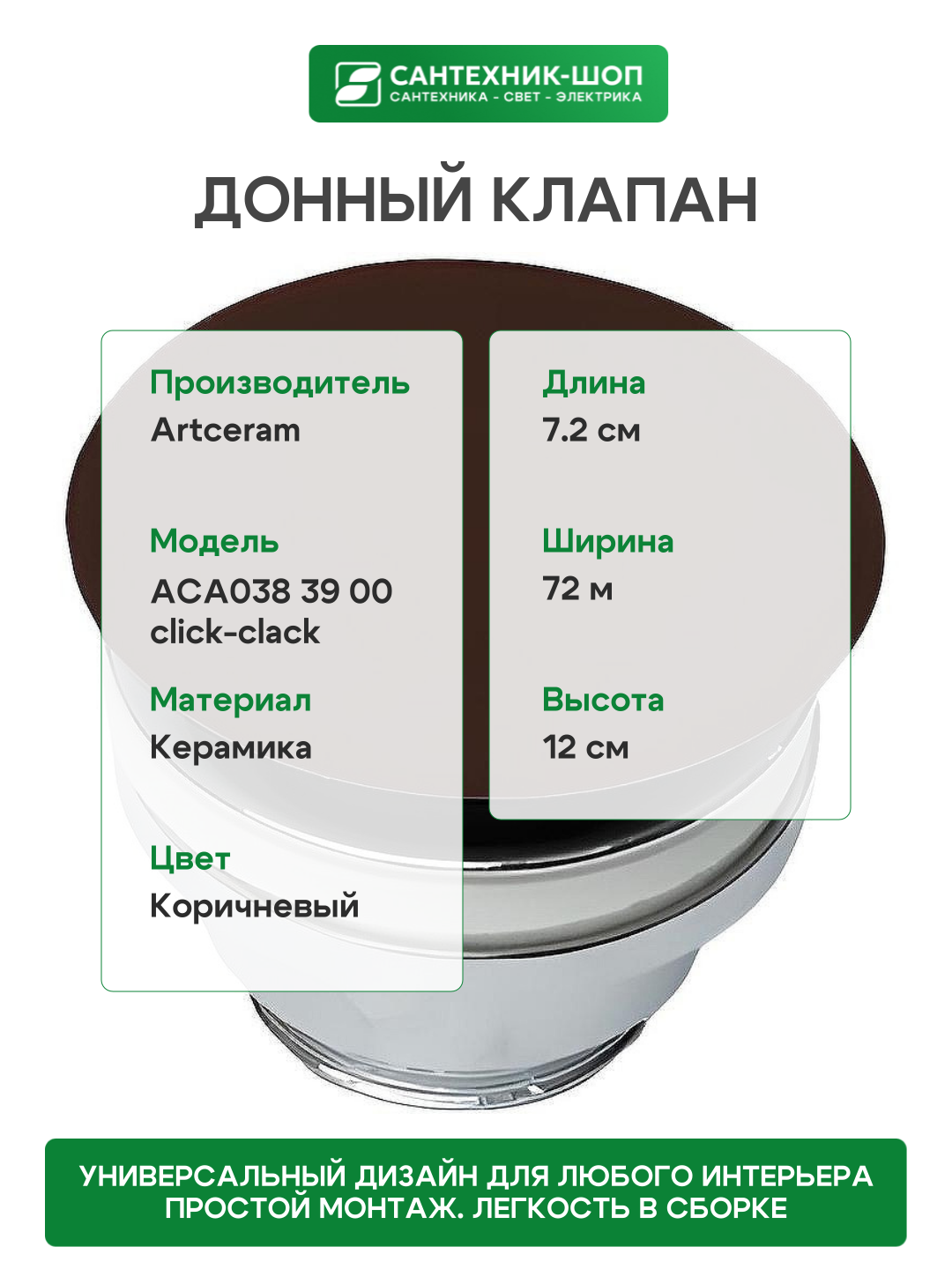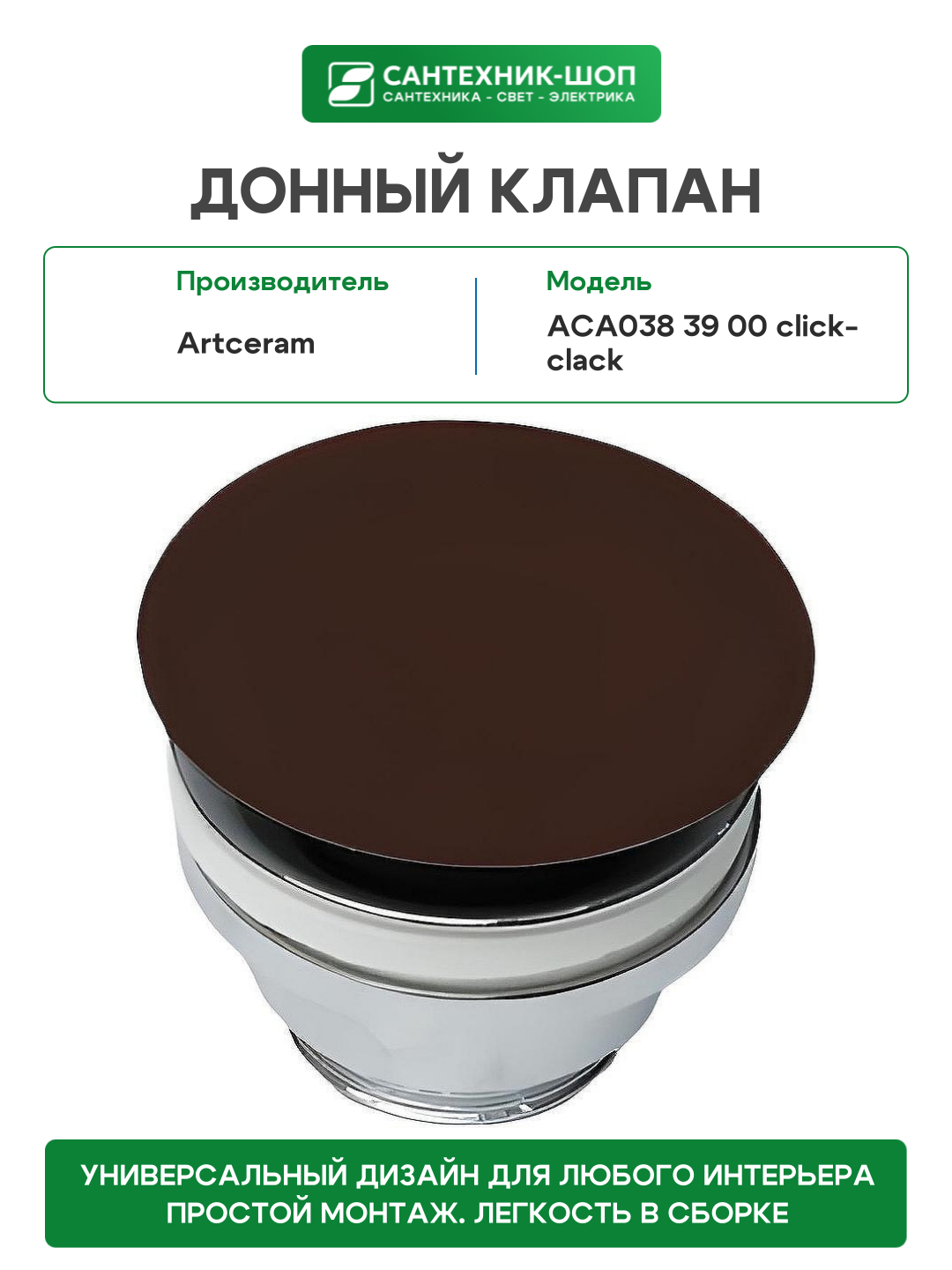 Сервис сравнения цен СкидкаГИД предлагает сравнить цены на товар «Донный клапан Artceram ACA038 39 00 click-clack Cocoa»