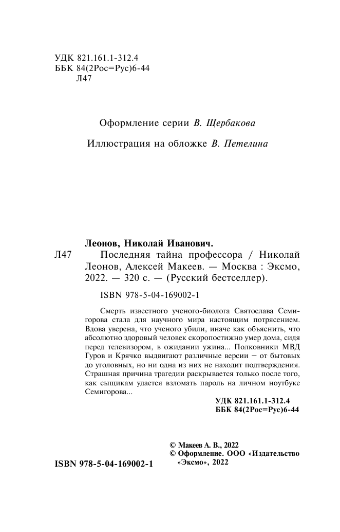 Последняя тайна профессора (Леонов Николай Иванович; Макеев Алексей Викторович); Эксмо, Редакция 1, 2022