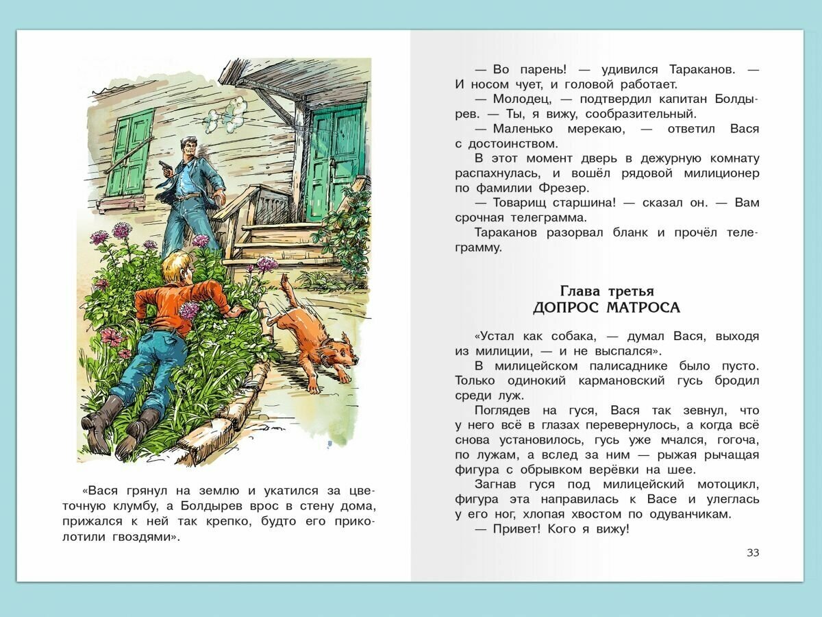 Ребята, я эту историю читала, ещё когда в школе училась, и тогда она меня просто потрясла своим острым сюжетом и интересными поворота. Сейчас мне 33, и я эту книгу купила себе! Читать, и вновь ощущаю все те же чувства, что и тогда. Просто бомбезно! Вместе с простодушным Васей вы прогуляетесь по деревенскому рынку, расстроитесь из за обмана, вместе со следователем пойдете по следу преступников, схлестнетесь с ними в схватке, а так же поработаете без прикрытия! К прочтению рекомендую!