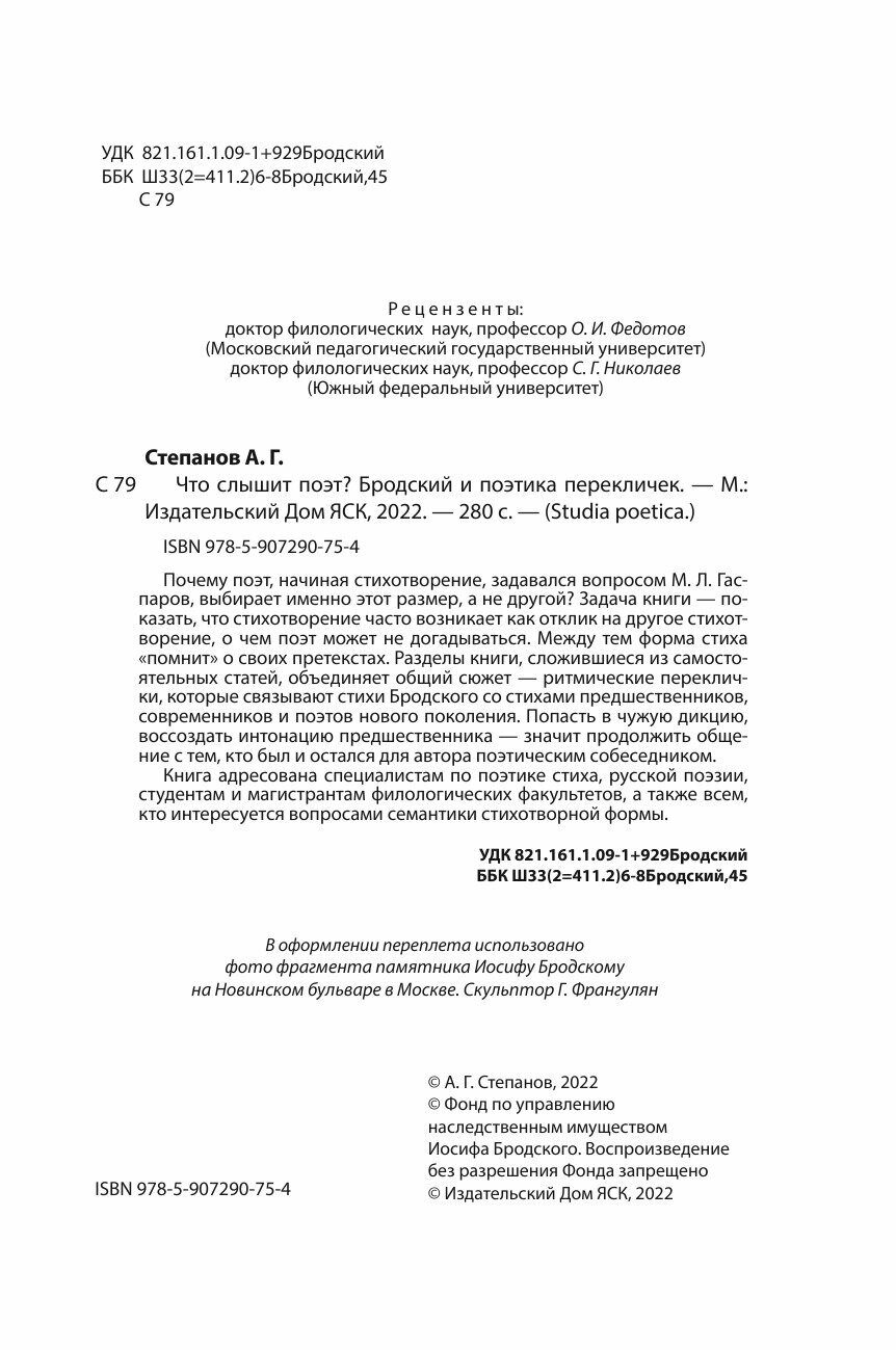 Сервис сравнения цен СкидкаГИД предлагает сравнить цены на товар «Книга: Что слышит поэт Бродский и поэтика перекличек (Степанов Александр Геннадьевич); Языки славянской культуры, 2022»