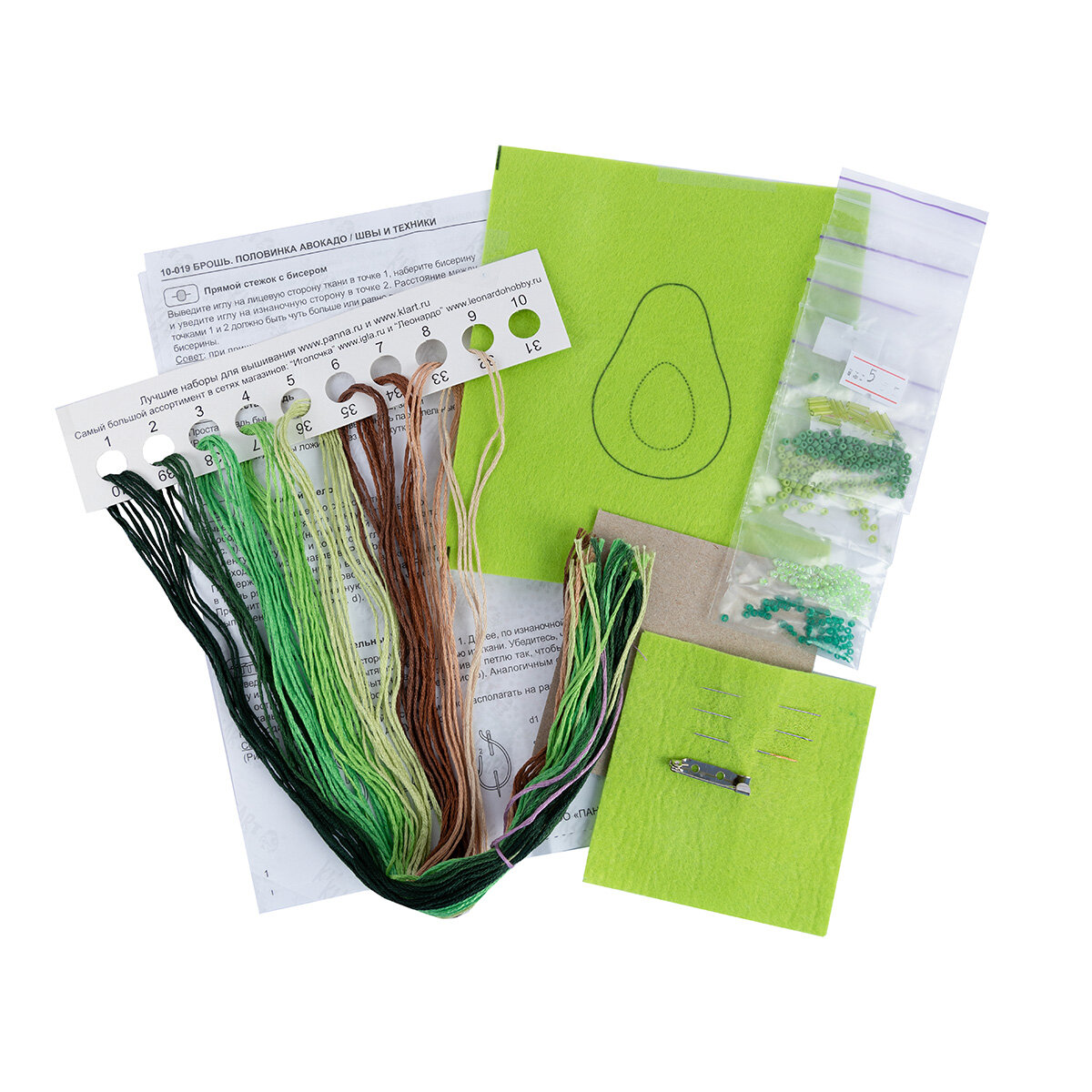 | В набор входит | Бисер, Фетр, Фетр с напечатанным контуром, Заготовка для броши, Заготовка из картона, инструкция с пошаговыми иллюстрациями |