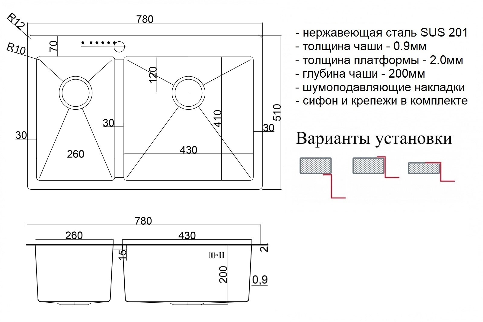 Кухонная мойка ZorG Steel Hammer 78 SH 78-2-51-R.