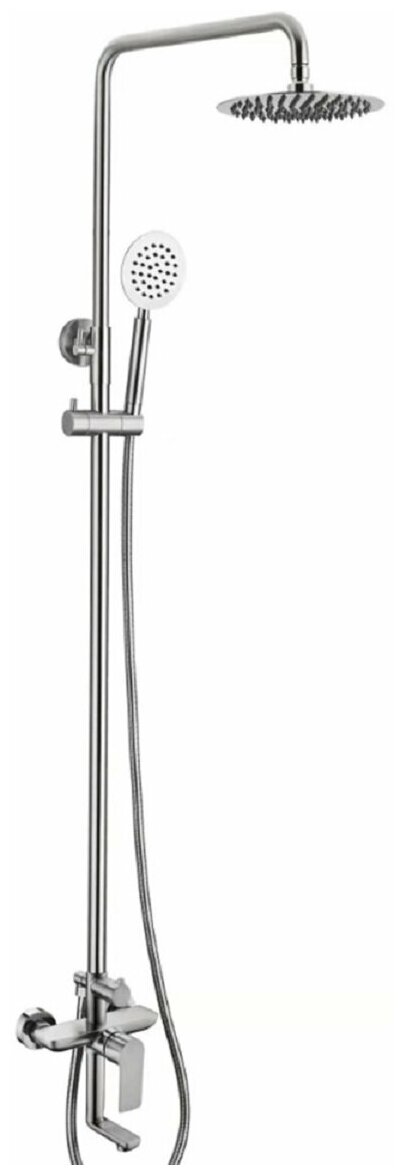 | ВКоробке | Душевая стойка - 1 шт. Верхний душ - 1 шт. Лейка - 1 шт. Шланг - 1 шт. Смеситель - 1 шт. Эксцентрик - 2 шт. Инструкция - 1 шт. |