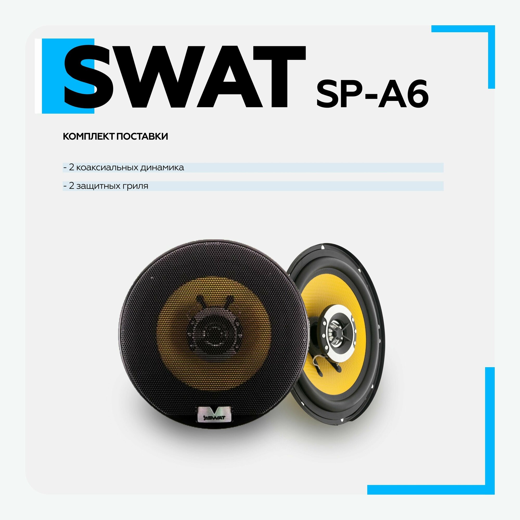 Колонки автомобильные Swat SP-A6 (без решетки) 250Вт 89дБ 4Ом 16см (6.5дюйм) (ком.:2кол.) коаксиальные двухполосные