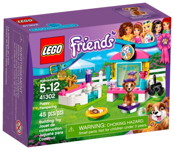 LEGO Friends Выставка щенков: Салон красоты - набор, который сможет заинтересовать маленькую девочку. Очаровательный щеночек Лара решила попробовать свои силы на конкурсе красоты, для этого ей нужно хорошенько поработать над своим образом. Сначала она хорошенько «поплюхается» в ванной, а затем помой ее специальным шампунем для гладкости и шелковистости шерстки. Для создания эффектной прически посади ее на уютную табуреточку перед зеркалом и высуши ее шерстку. Как все будет готово, после напутственных слов вдохнови ее косточкой на удачу!