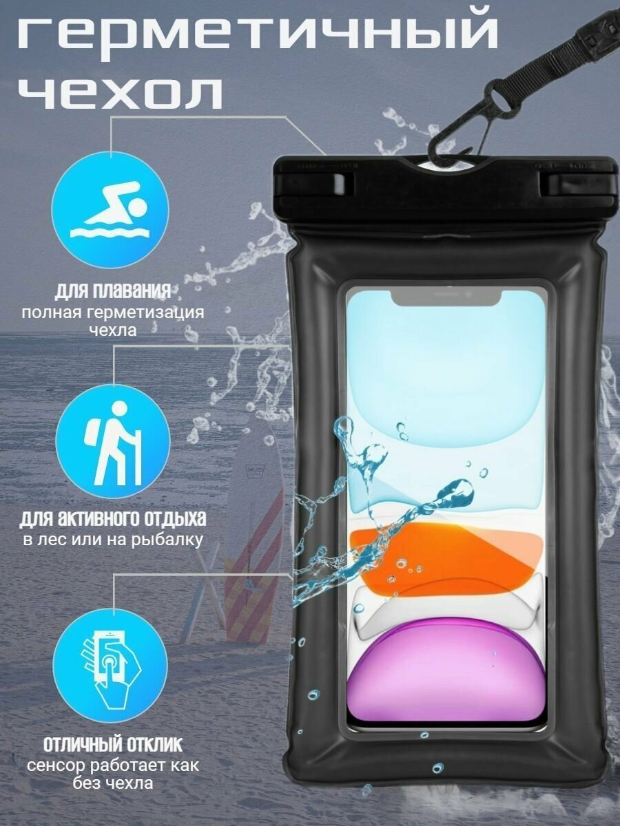 Водонепроницаемый чехол для телефона Следопыт — современный, водонепроницаемый, прозрачный чехол, который защитит ваш телефон, документы, деньги, GPS, важные вещи и другую электронику на отдыхе. Чехол гарантирует полный функционал сенсора девайса, находящегося в чехле. Эластичность и прозрачность материала, из которого изготовлен чехол позволяет использовать мобильный телефон или навигатор прямо в воде, во время песчаной бури или под проливным дождем. Создан из высокотехнологичного термопластичного полиуретана, который легко выдерживает любые нагрузки. Универсальный и герметичный чехол Aquabag обеспечивает 100% защиту от воды, пыли, песка, грязи, мокрого снега, во время любого вида активного отдыха и спорта. Полезная и необходимая вещь для каждого. Чехол создан для поклонников активного отдыха и сторонников водных видов спорта, также он обеспечивает надежную защиту во время походов в горы или в условиях повышенной влажности.ХАРАКТЕРИСТИКИСезон: всесезонныйРазмеры: 160*100 ммОСОБЕННОСТИустройства могут использоваться на глубине до 20 метровне тонет в воде100% защита от воды, песка и пыличехол изготовлен из мягкого материала, который не влияет на управление сенсорным экраномКОМПЛЕКТАЦИЯ:чехол;лента крепления на руку/плечо;шнур на руку.Комплектациячехол, лента крепления на руку/плечо, шнур на руку.