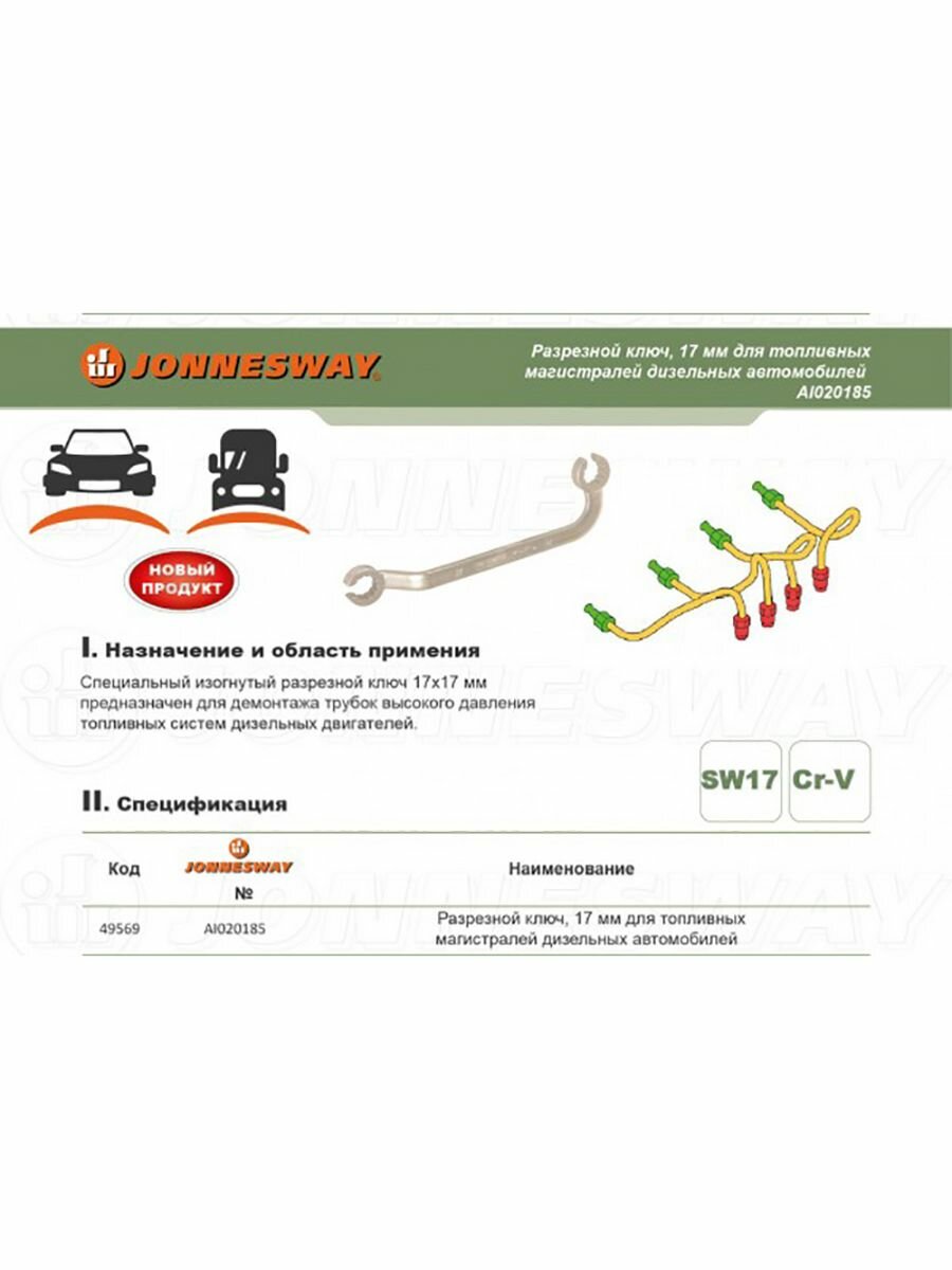 Разрезной ключ 17 мм для топливных магистралей дизельных автомобилей Jonnesway AI020185