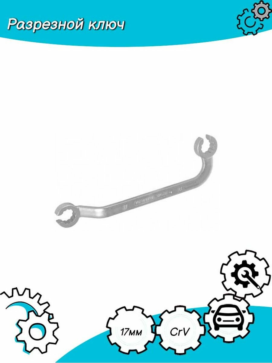 Специальный изогнутый разрезной ключ 17х17 мм предназначен для демонтажа трубок высокого давления топливных систем дизельных двигателей.