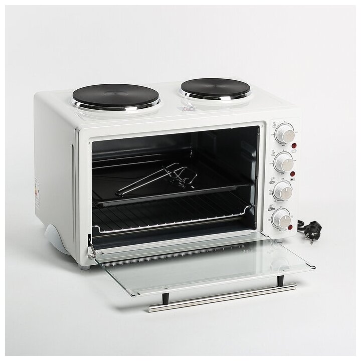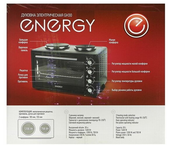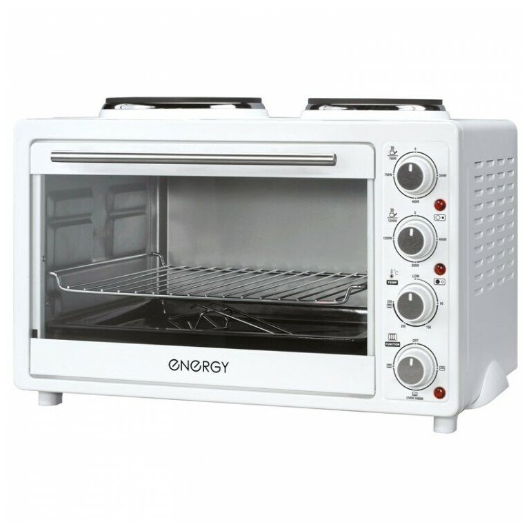 Электропечь ENERGY оснащена двумя электрическими конфорками и электрической духовкой. Прибор имеет высокую мощность 1400 Вт и вместительный объем рабочей камеры, что обеспечивает равномерное приготовление даже большой порции пищи. Дверца из жаропрочного стекла надежно удерживает тепло внутри в течение всего процесса приготовления. Электрическая печь способна заменить духовку и плиту, а благодаря компактным размерам она идеально впишется в обстановку, где необходимо сохранить максимум пространства, такую как небольшие по площади кухни в городской черте, или в загородном доме.