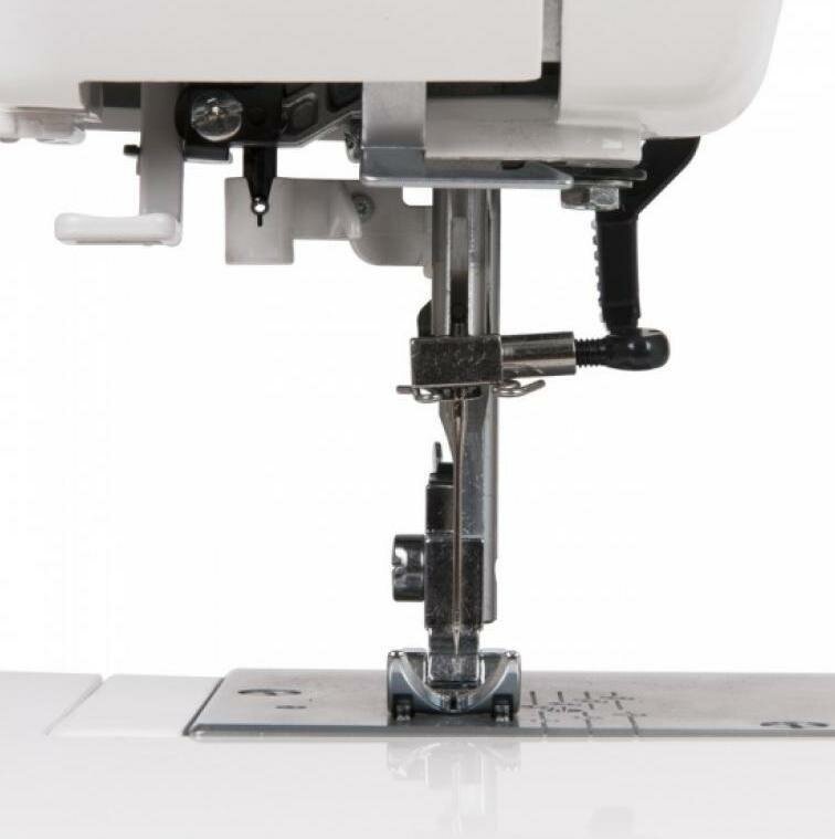 | Прочие особенности и свойства | Автостоп при намотке нитки на шпульку Линейка на корпусе Регулятор натяжения верхней нити Вертикальный челнок Рычаг обратного хода Легко пристегивающаяся лапка Дополнительный подъём лапки Регулятор давления лапки на ткань Встроенный нитеобрезатель Встроенный нитевдеватель Переключатель нижнего транспортера Металлическая станина Два металлических вертикальных катушечных стержня Свободный рукав Отсек для хранения аксессуаров с держателями для шпулек |