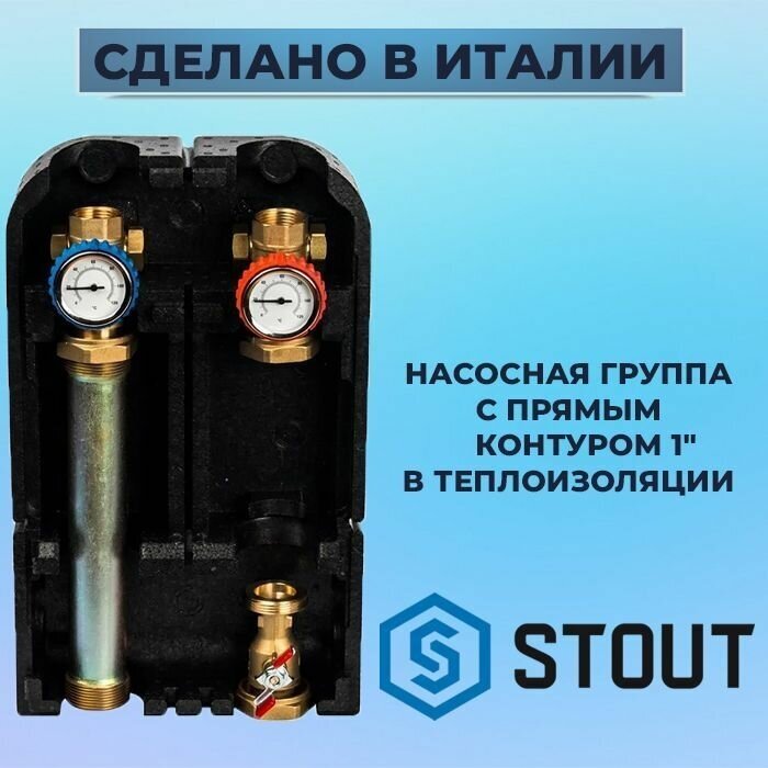 Stout SDG-0001-002501 - насосная группа быстрого монтажа, которая предназначена для обвязки котлов и обеспечивает принудительную циркуляцию теплоносителя. Прямая насосная группа оптимальна как для подачи в контур отопления или кондиционирования. Насосная группа с прямым контуром (подача теплоносителя осуществляется напрямую, без подмешивания) состоит из трех запорных шаровых кранов и одного обратного клапана, двух термометров подающей и обратной линии и блочной теплоизоляции. Насосная группа устанавливается непосредственно на стену в помещении. Насосная группа с прямым контуром является реверсивной (при необходимости может осуществляться обмен местами подающей и обратной линии). Диаметр подключения равен 1.