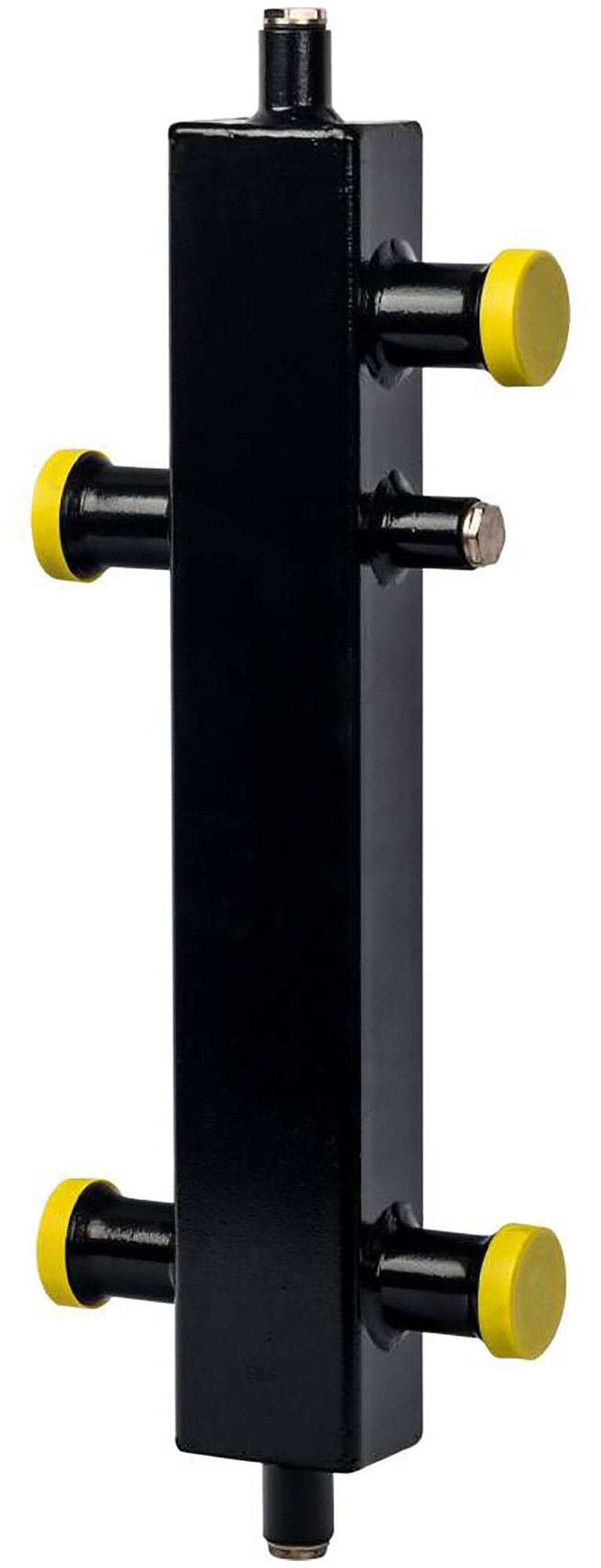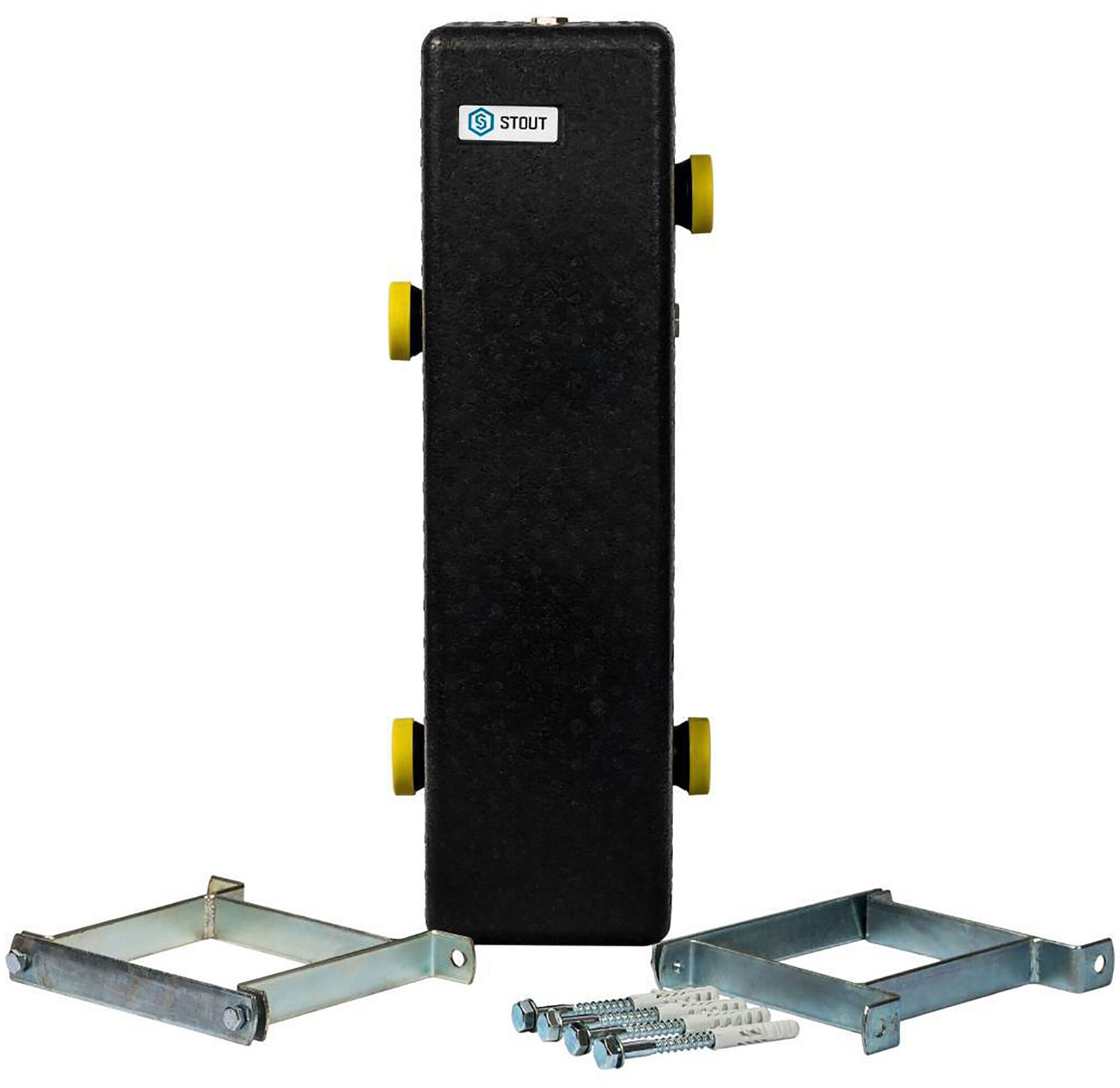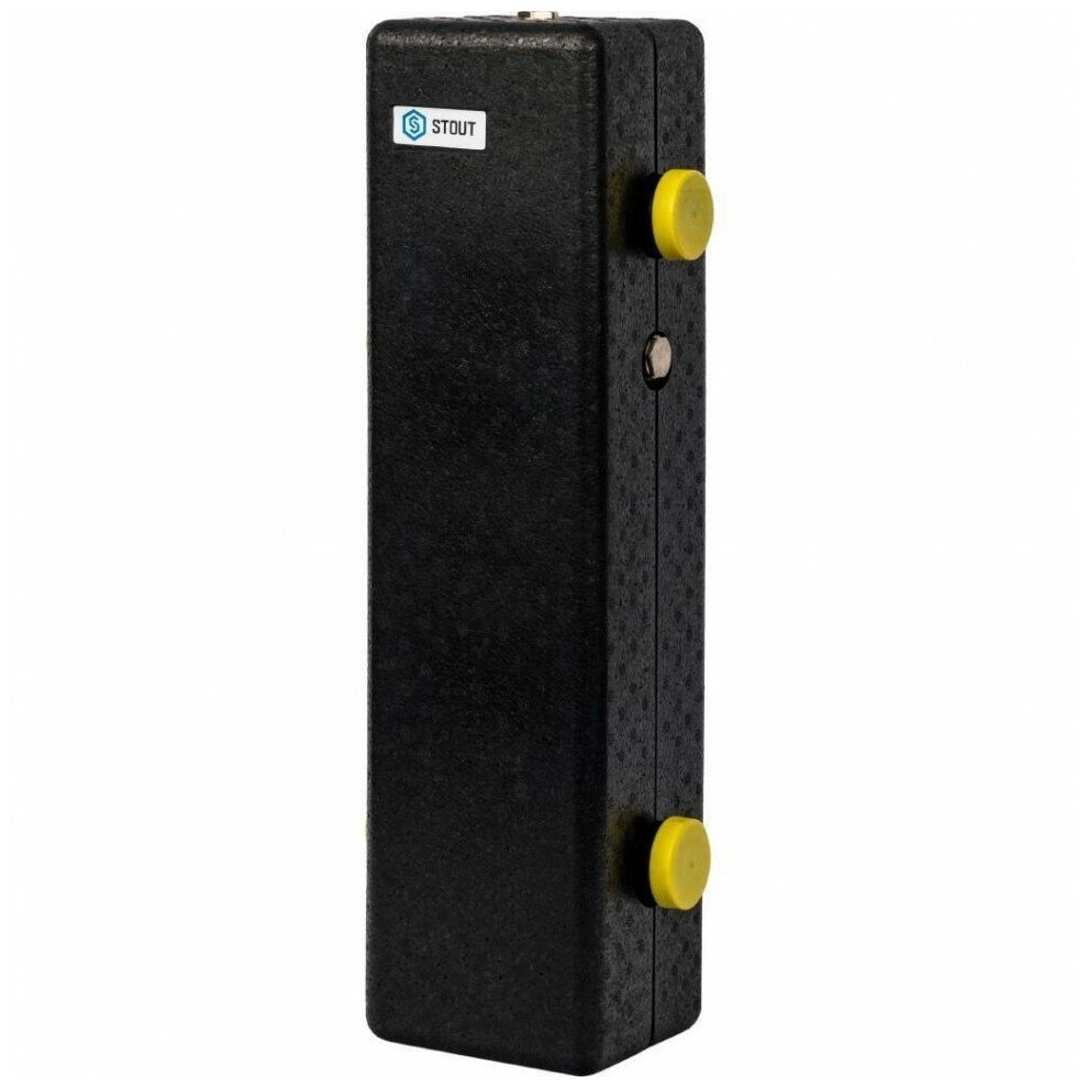 Stout - гидравлический разделитель для применения в системах теплоснабжения зданий с индивидуальным теплогенератором (котлом) с целью стабилизации гидравлического режима ее работы. Гидравлический разделитель представляет собой ёмкость с четырьмя патрубками - два с одной стороны для подключения первичного (котлового) циркуляционного контура и два с другой стороны для присоединения вторичных контуров систем теплопотребления. Кроме основных патрубков, гидроразделитель снабжён штуцерами с резьбой G 12 для установки воздухоотводчика, дренажного крана и контрольного термометра. Гидравлический разделитель позволяет исключить влияние насосов каждого контура друг на друга при различных режимах работы систем. Гидравлический разделитель устанавливается между контурами источника тепловой энергии и систем теплопотребления. При этом каждый из контуров должен иметь свой циркуляционный насос. Выбор гидравлического разделителя осуществляется по предельно-допустимому расходу теплоносителя через него. Насос первичного контура выбирается на суммарный расход теплоносителя в системе и потери давления в первичном контуре (без учета потерь давления в системах теплопотребления).