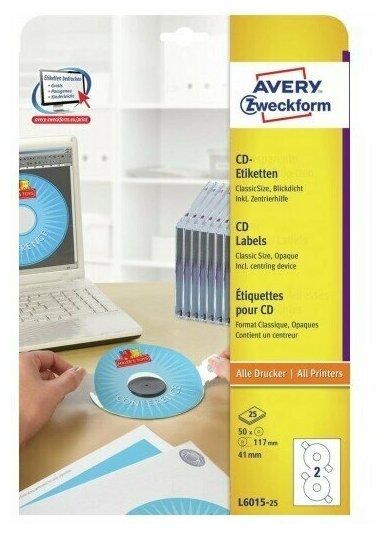 самоклеящиеся этикетки Zweckform для CD/DVD Avery Zweckform L6015-25
