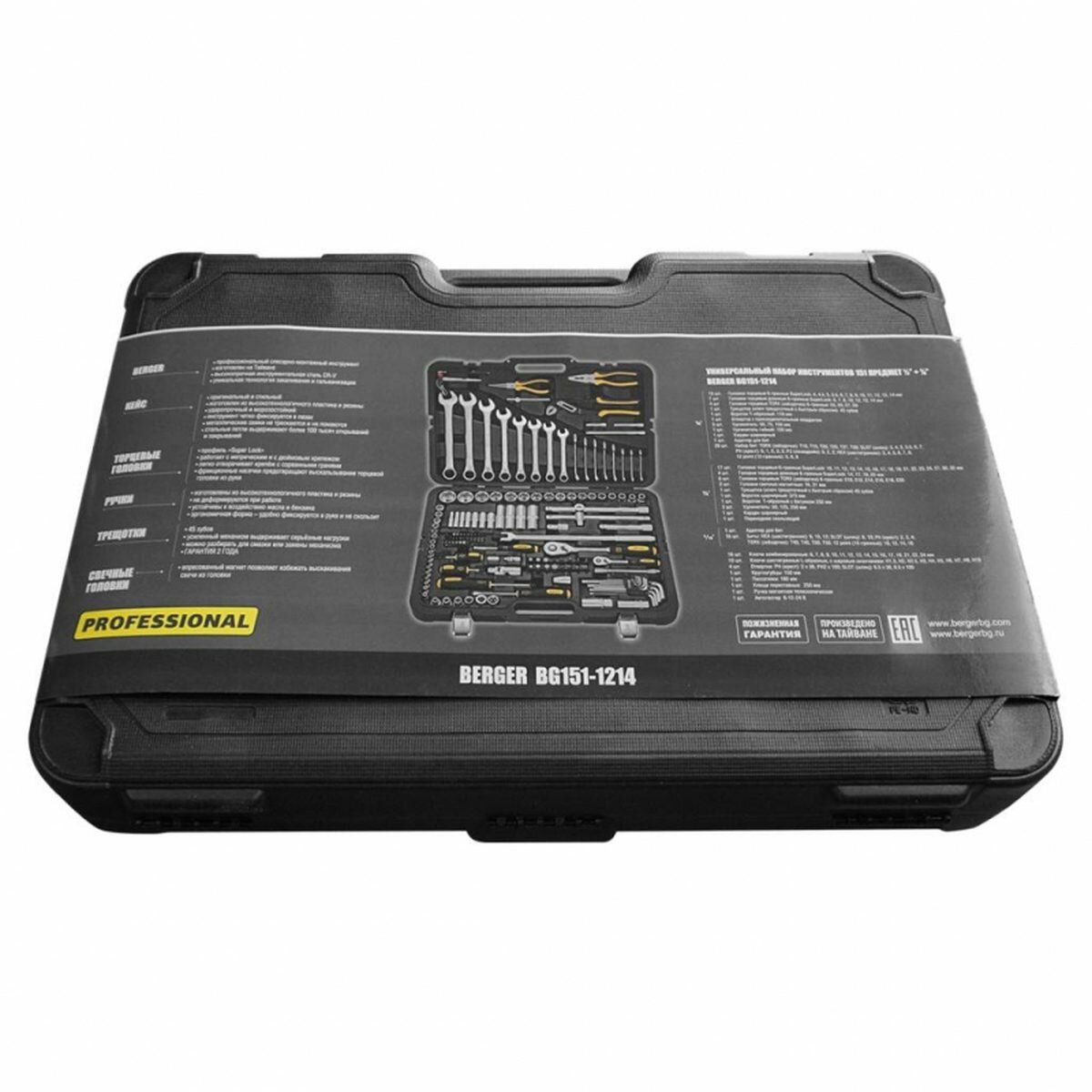 Универсальный набор инструментов 151 предмет Berger BG используется для выполнения ремонтных и монтажных работ. Инструменты уложены в кейс, где каждый занимает определенное место. Все изделия изготовлены из высокопрочной хромованадиевой стали. Инструменты проходят двойной контроль коррозионной устойчивости. Для удобной работы некоторые предметы оснащены эргономичными рукоятками, которые не скользят и удобно фиксируются в руке, что создает комфорт в работе.