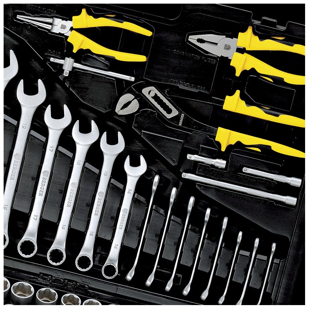 Универсальный набор инструментов BERGER предназначен для профессионального использования. Набор является практичным благодаря широкому ассортименту элементов, которые входят в его состав. Все предметы выполнены из высокопрочной легированной стали, которая проходит процесс специализированной обработки. Набор поставляется в удобном высокопрочном пластиковом кейсе для хранения и транспортировки.