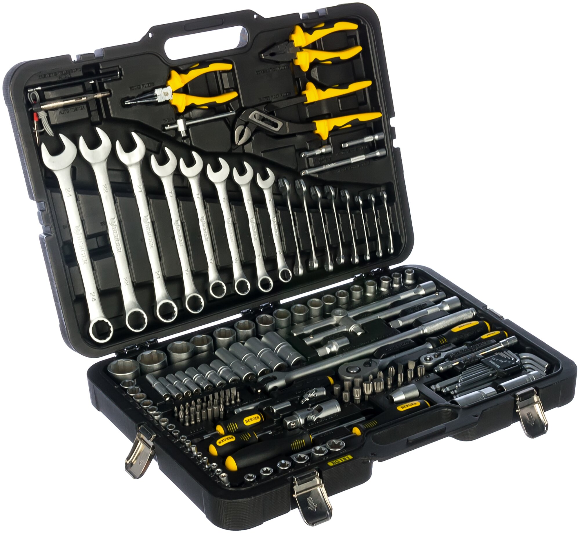 | Вид инструментов в составе набора | отверточный наборпассатижинабор битотверткакруглогубцыключ-трещеткаудлинитель для головоккарданный шарнир для головокклещиторцевые головкиворотокпереходник скользящийключи комбинированныеавтотестер |