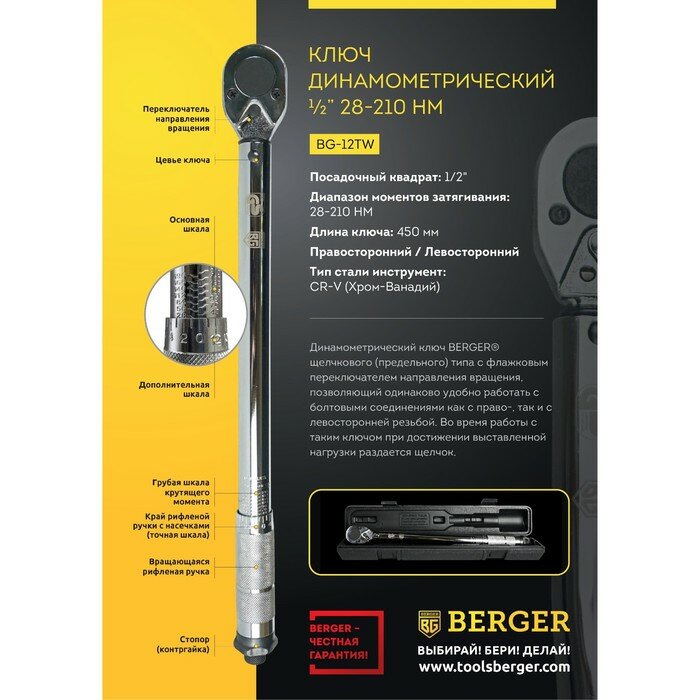 Динамометрический ключ. Какие типы не стоит покупать . Berger BG-12TW
