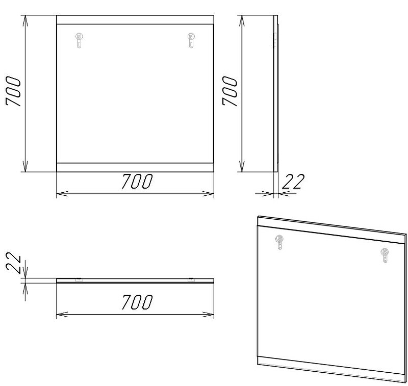 - Габариты (ШxВxГ): 700x700x22 мм.