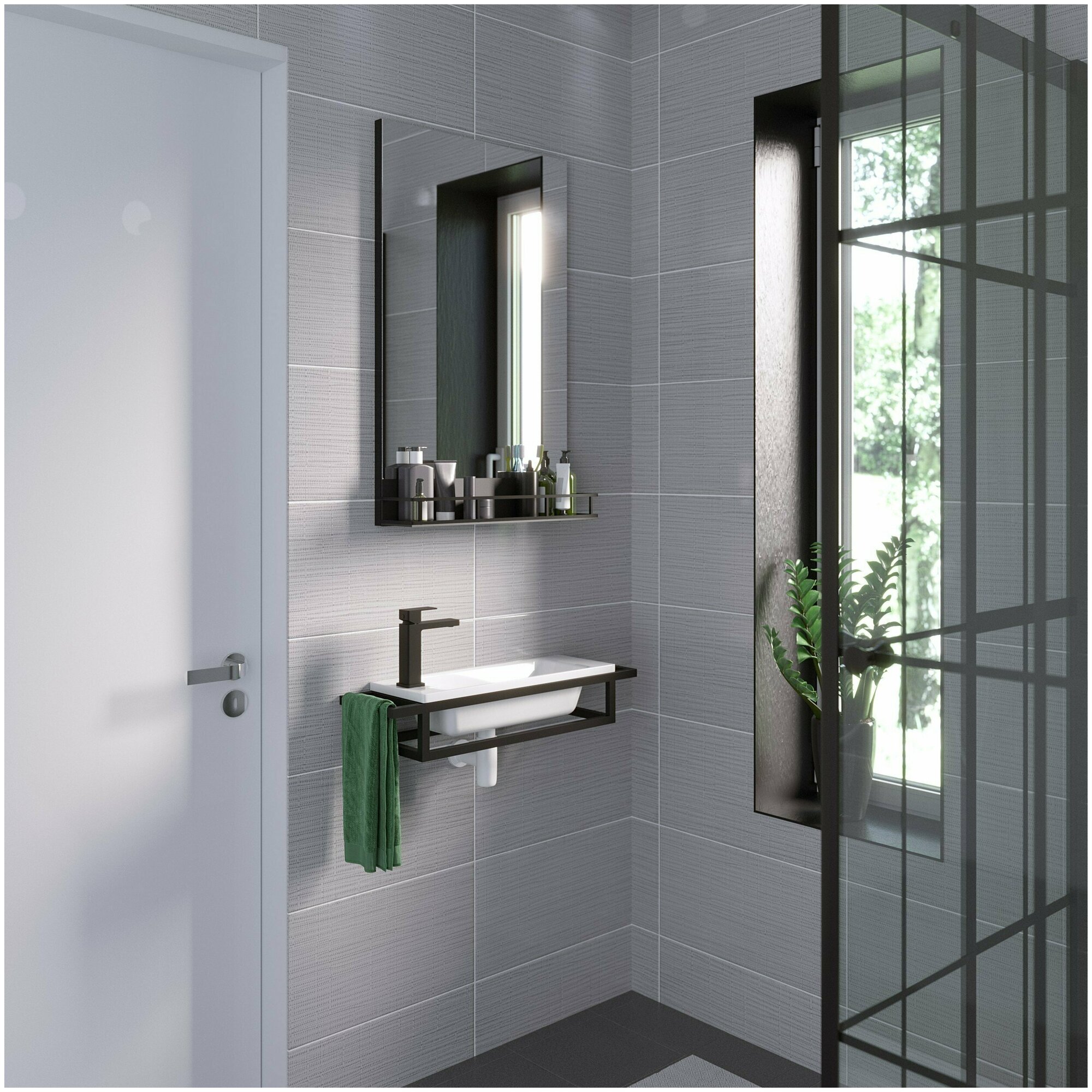 Зеркало Grossman МЕТРИС-50 см с полкой черное 205001