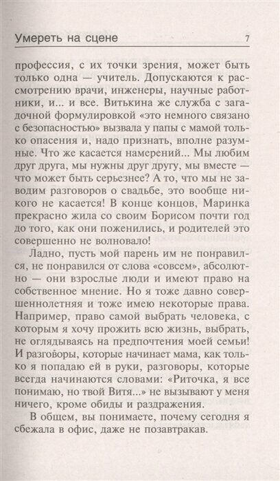 "О, ступайте, ступайте в театр, живите и умрите в нем, если можете!.." - сказал классик. Очевидно, он имел в виду нечто романтическое и возвышенное, уместное в храме искусства... Хотя театр не только храм, в нем бурлят и низкие страсти: честолюбие, зависть, ревность к чужому таланту, жажда славы и материальных благ… Рита Рощина, сотрудница частного детективного агентства "Шиповник", получила задание - расследовать анонимные звонки с грязными оскорблениями, поступающими главному режиссеру областного театра драмы, который не подозревает никого из сотрудников театра - подлость среди служителей муз, по его мнению, немыслима! В первый же визит в театр под видом журналистки Рита становится свидетельницей того, что "умереть на сцене" - не всегда просто фигура речи…