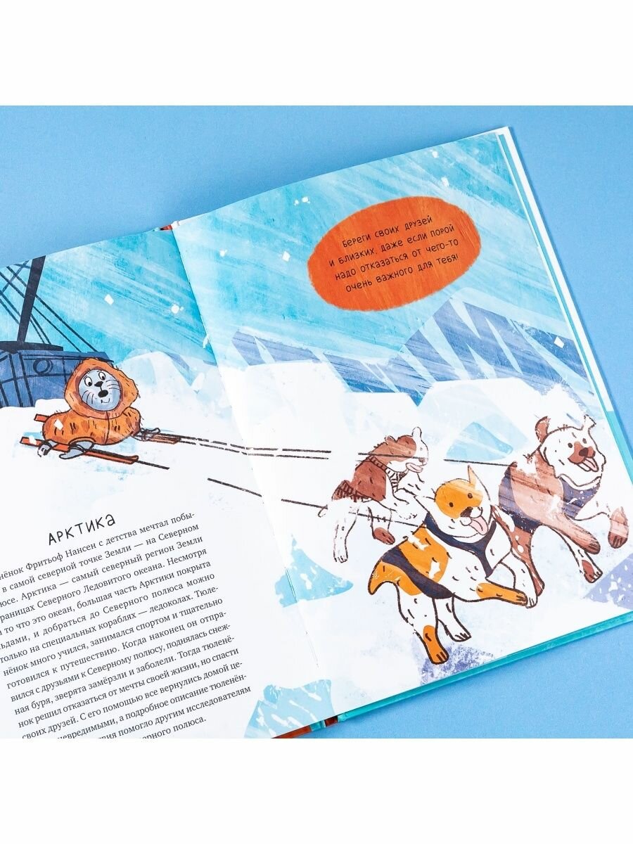 Расскажите своему ребенку о Великих географических открытиях, бесстрашных путешественниках и первопроходцах, океанах и материках. А сделать это интересно поможет книга "Великие географические открытия плюшевых игрушек"! Девочка Лия и её плюшевые друзья придумали новую игру: они перевоплощаются в великих первооткрывателей и путешествуют по их следам. Так медвежонок Афанасий Никитин попал в Индию, зайчонок Птолемей составил для других игрушек карту Европы, а пингвины Фаддей Беллинсгаузен и Михаил Лазарев исполнили свою мечту - нашли континент Антарктиду. Их приключения - не просто захватывающие и подчас забавные истории познания нашей планеты. Это еще и пример того, как важно быть любознательным, смелым, искренним и никогда не сдаваться - как великие путешественники прошлого. И кто знает, может, с помощью этой книги ваш ребенок тоже сделает открытие - о том, как интересны и увлекательны география и история!