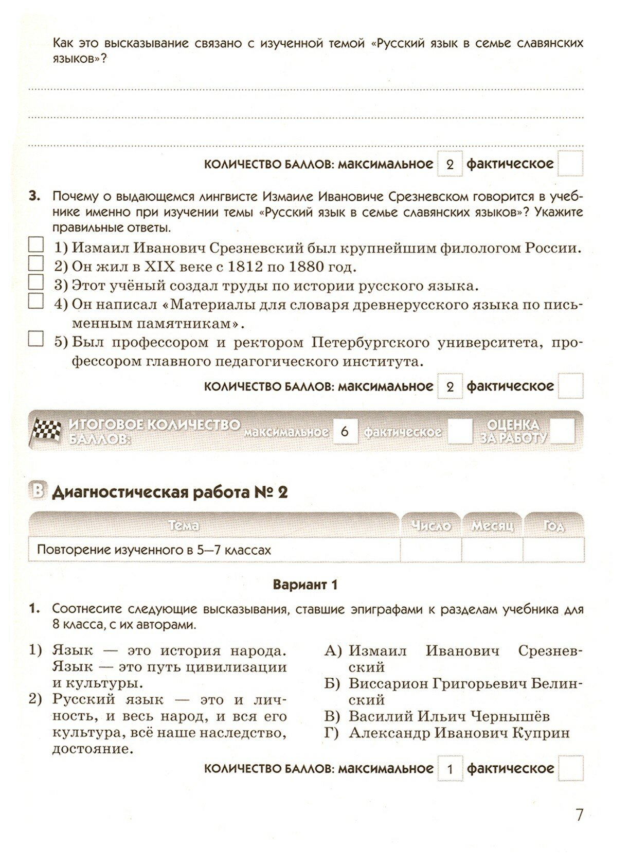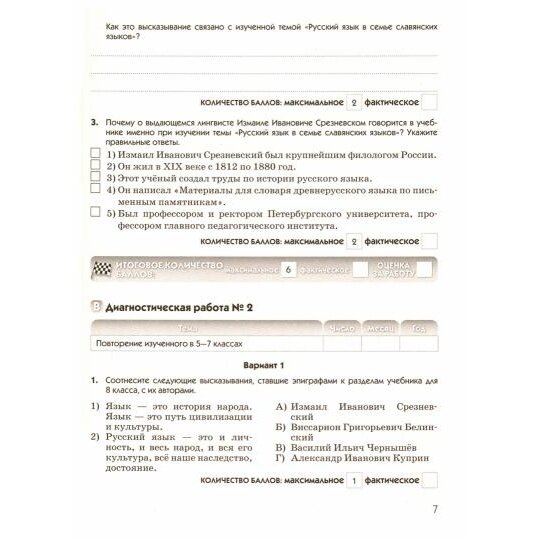 Рабочая тетрадь, созданная в связи с введением в действие ФГОС ООО по русскому языку, поможет учителю объективно диагностировать предметные и метапредметные результаты освоения школьниками учебной дисциплины в формате входного, тематического и итогового контроля, учащимся - вести подготовку к итоговой аттестации по русскому языку, прибегая к самопроверке, а родителям - организовать работу над ошибками учащихся в домашних условиях.