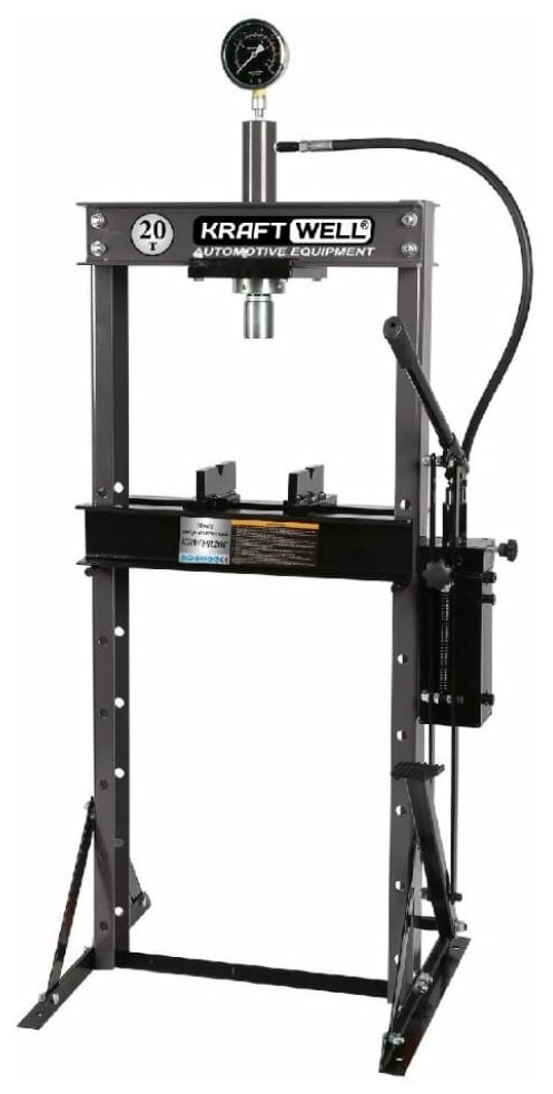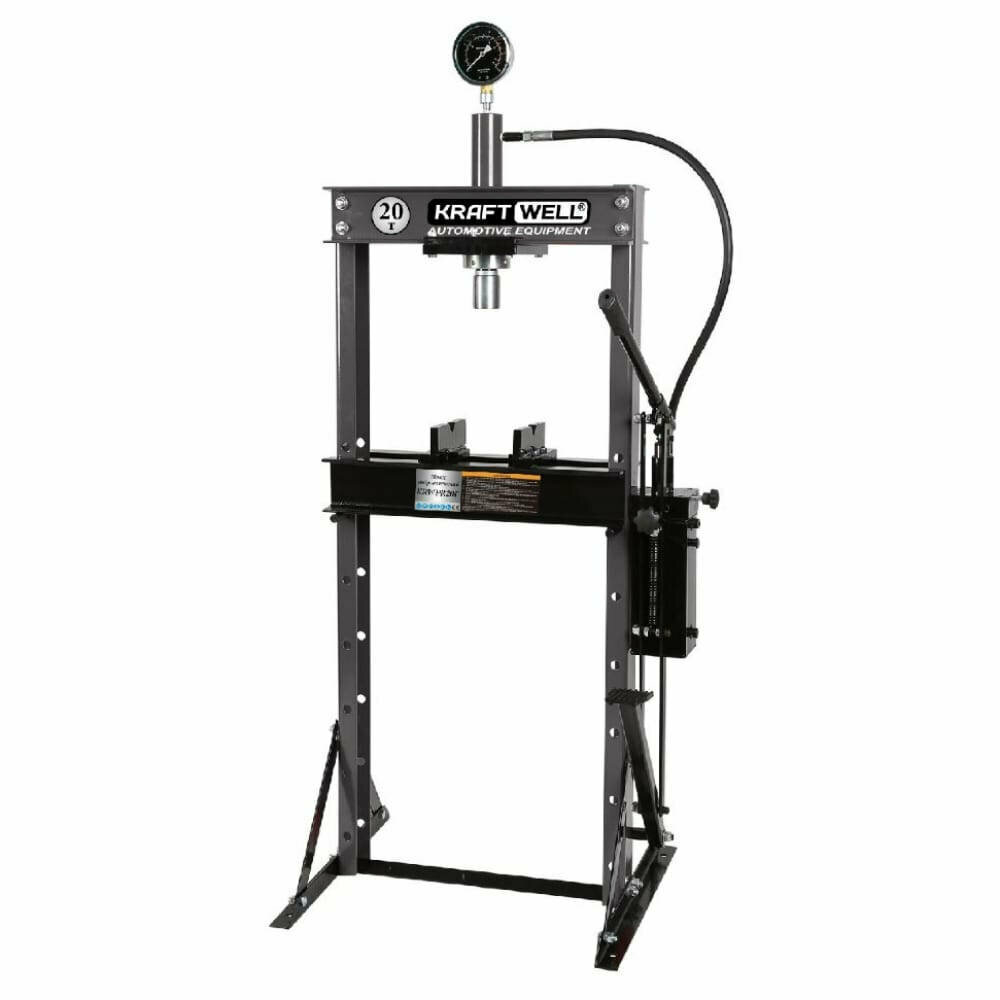 Пресс напольный KraftWell KRWPR20F с ручным и ножным приводом для выпрессовки/запрессовки автомобильных деталей, например, ступичных подшипников или сайлентблоков рычагов.