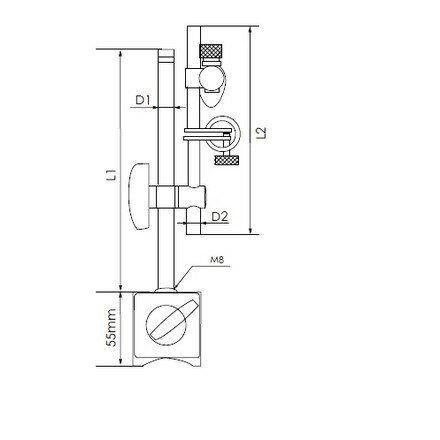 Стойка спроектирована таким образом, что позволяет закреплять индикаторный инструмент с размерами стержня 8 мм и 3/8" дюйма.