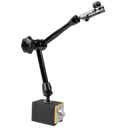 Механический магнитный измерительный штатив с механической фиксацией из одной точки. Все три сочленения зажимаются одной поворотной рукояткой. Зажимное усилие плавно и надежно регулируется. Шаровые шарниры обеспечивают быстрое и простое позиционирование.