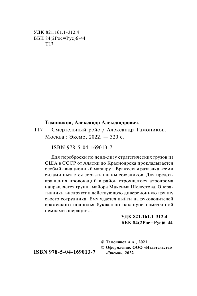 Книга: Смертельный рейс (Тамоников Александр Александрович); ООО "Издательство "Эксмо", 2022