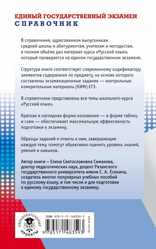 ЕГЭ. Русский язык. Новый полный справочник для подготовки к ЕГЭ (Елена Святославовна Симакова); АСТ, 2022