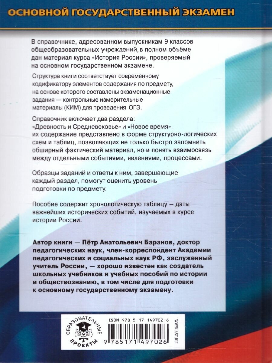 Автор книги - Пётр Анатольевич Баранов, доктор педагогических наук, член-корреспондент Академии педагогических и социальных наук РФ, заслуженный учитель России - хорошо известен как создатель школьных учебников и учебных пособий по истории и обществознанию, в том числе для подготовки к государственной итоговой аттестации.