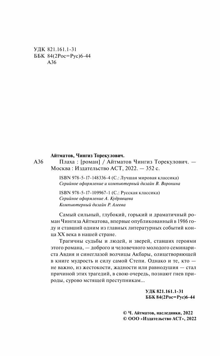 Книга: Плаха (Айтматов Чингиз Торекулович); ИЗДАТЕЛЬСТВО "АСТ", 2022