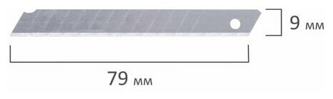 Изготовлены из углеродистой стали и имеют форму параллелограмма. Ширина лезвий - 9 мм, толщина - 0,38 мм. 10 штук в комплекте. Поставляются в пластиковом пенале.