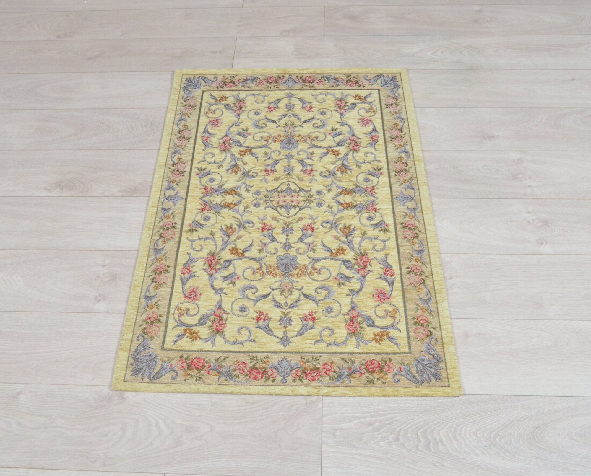 Тканый ковер гобеленового плетения из высококачественных современных материалов (49% полиэстер, 28% акриловый шенилл, 23% хлопок) на противоскользящей основе из латекса. Плотность +/- 1100 г / кв.м., в основе 6 нитей, уток ? 3 нити.