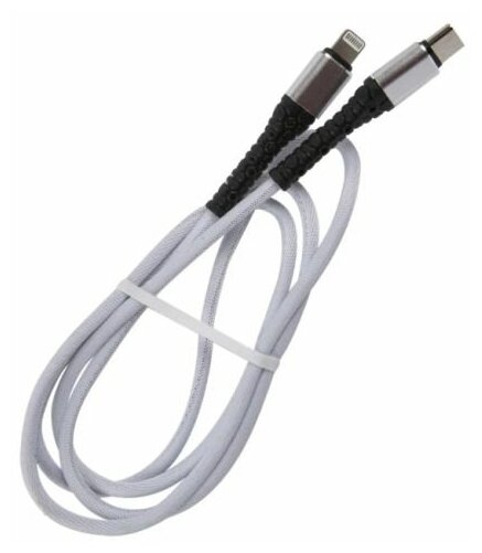 Дата-кабель mObility Type-C - Lightning 3А тканевая оплетка белый УТ000024628