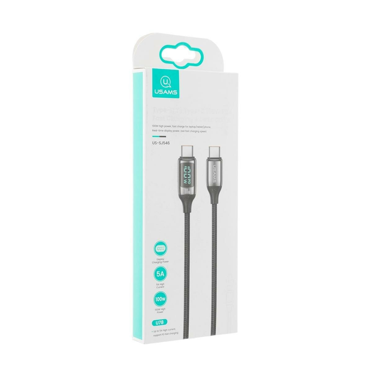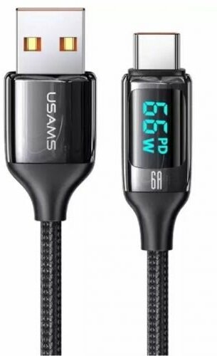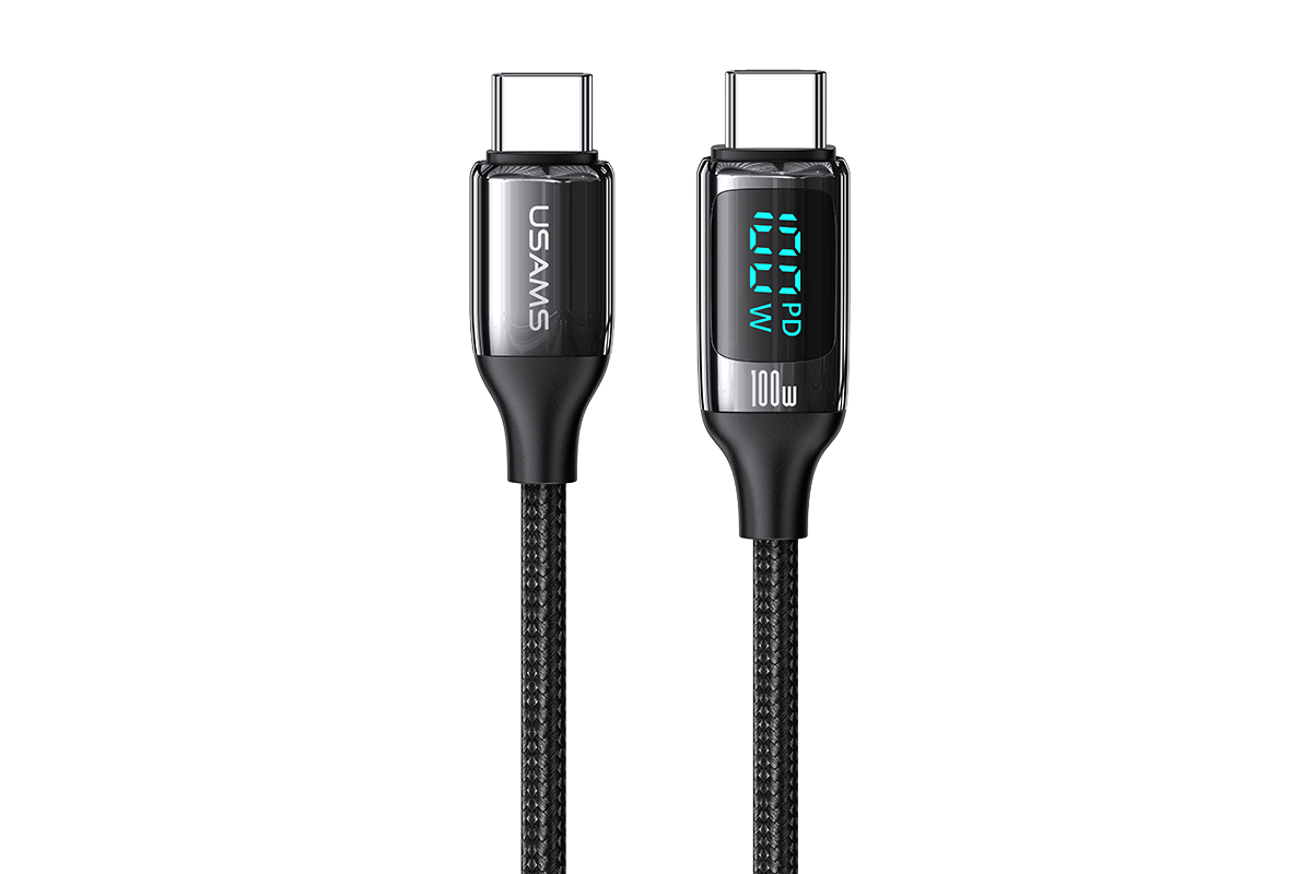 Дата-Кабель USAMS US-SJ546 U78 Type-C - Type-C PD 100W 5А LED дисплей нейлоновая оплетка черный(SJ546USB01) (УТ000029554)