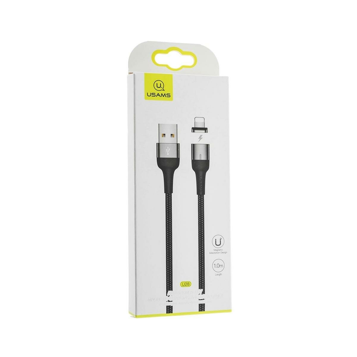 Дата-Кабель USAMS US-SJ326 U28 USB - Lightning 2.4A (1 м) с индикатором магнитный нейлоновая оплетка серый (SJ326USB03) (УТ000023875)