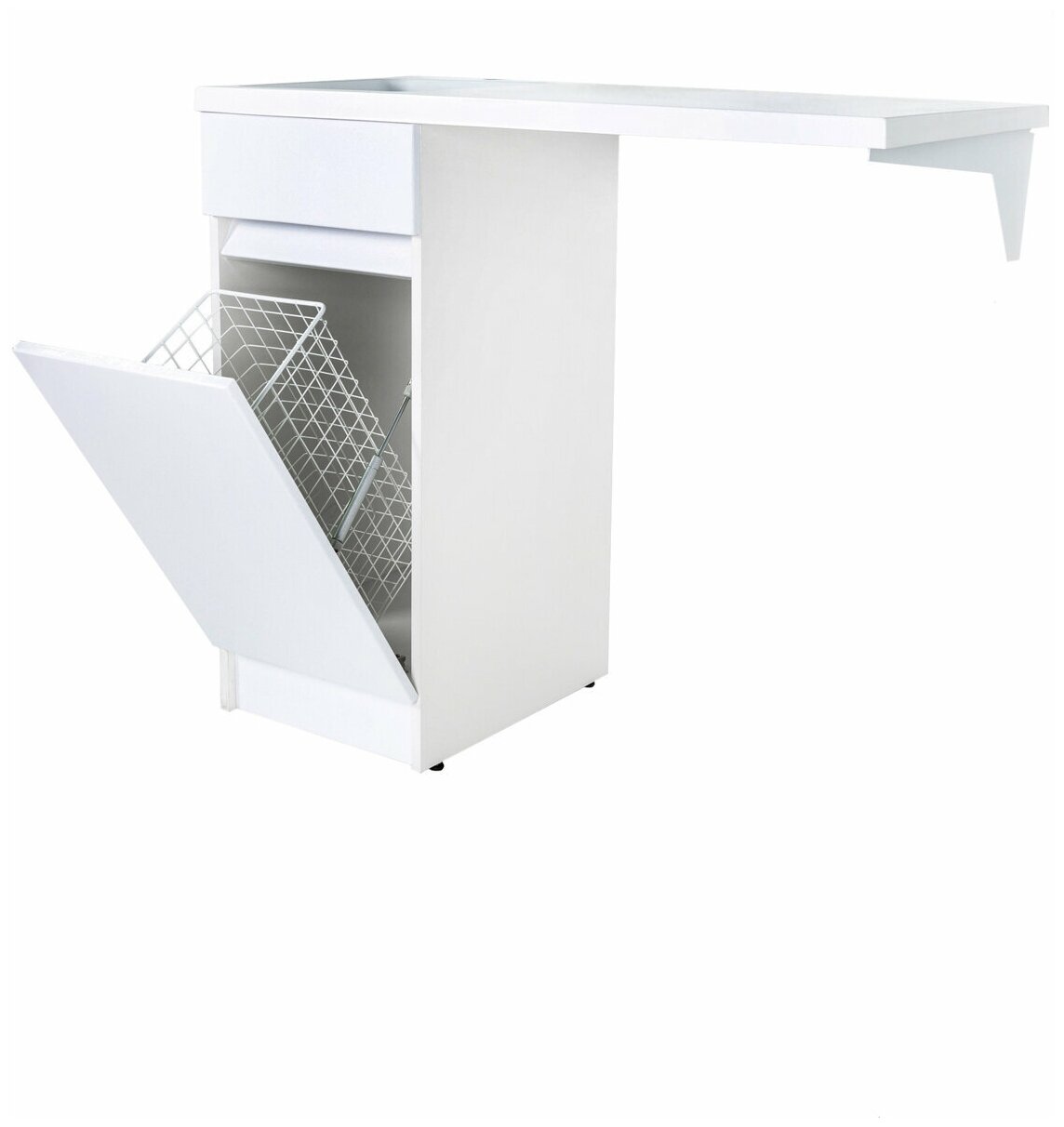 Тумба с раковиной Orange OPTIMA OPK-40TUW+RAL. Тумба напольная с левой раковиной под стиральную машину c корзиной для белья. Предназначена для использования в ванных комнатах с повышенной влажностью. Откидная дверца с корзиной для белья оснащена механизмом плавного открывания. Фасад - МДФ в цвете белый глянец, покрытие пленка ПВХ. Корпус - ЛДСП в цвете белый глянец. Раковина с одним отверстием под смеситель (материал - искусственный камень). В комплекте ножки подпятники 4 шт (регулировка по высоте до 10 мм) и кронштейн для крепления крыла раковины. Тип фасада: пленка. Форма: прямоугольная.