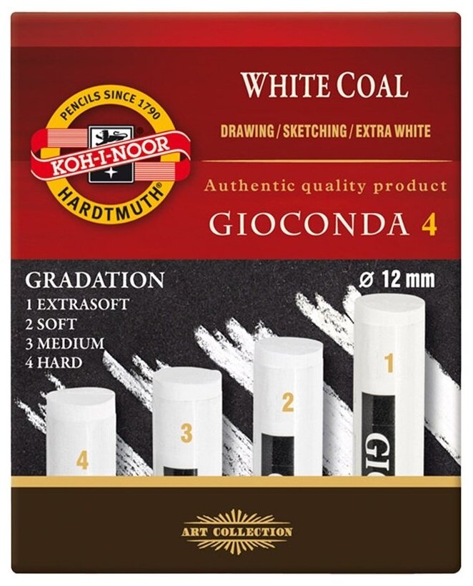 Уголь художественный белый круглый Gioconda 8692 2B-H 4 штуки; Koh-I-Noor, 2021