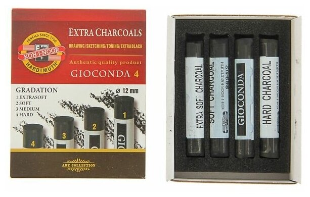 Уголь художественный черный мягкий Gioconda 8694 2B-H 4 штуки; Koh-I-Noor, 2021