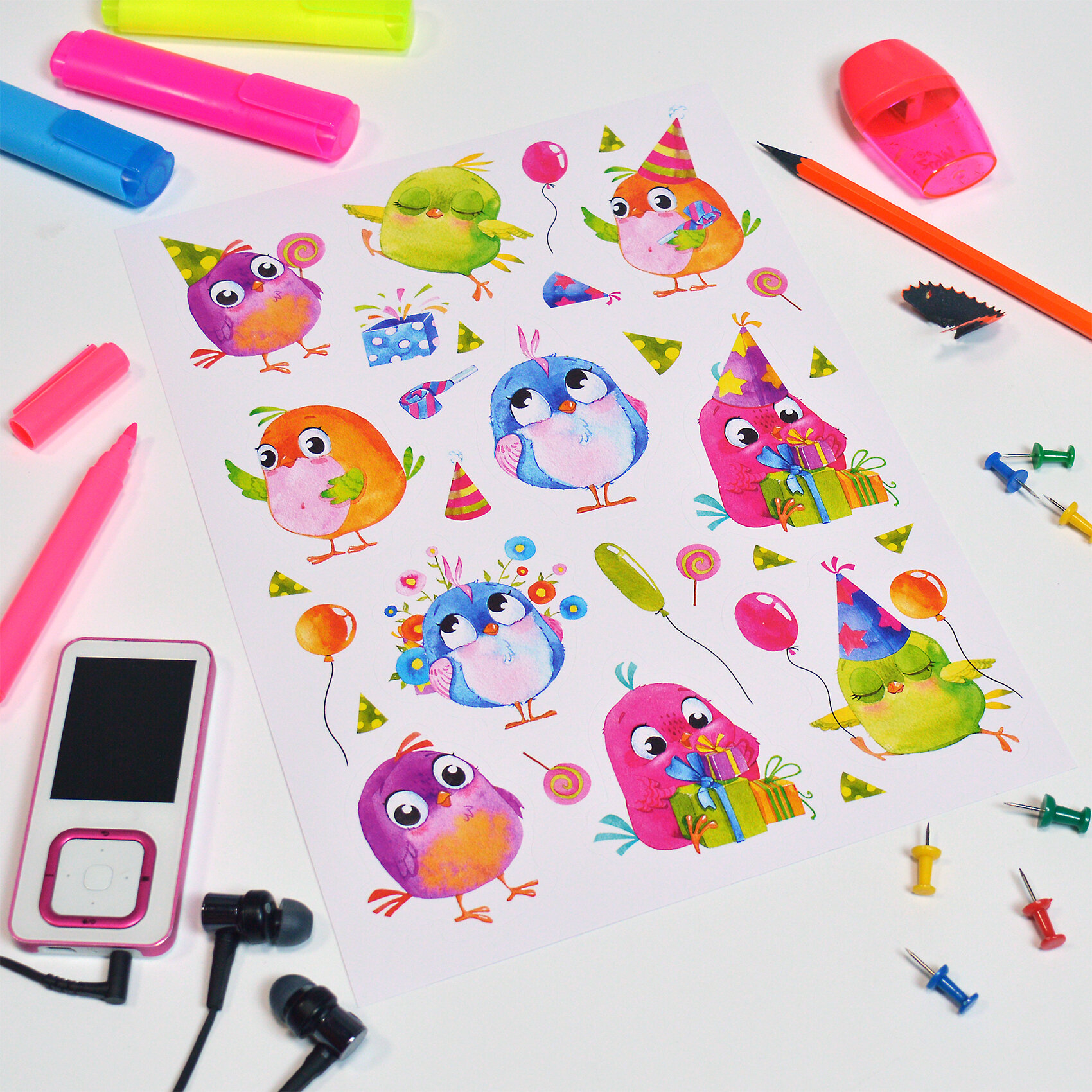 В комплект входит 1 лист с наклейками, размер листа – 21х29 см. 10 наклеек в наборе.