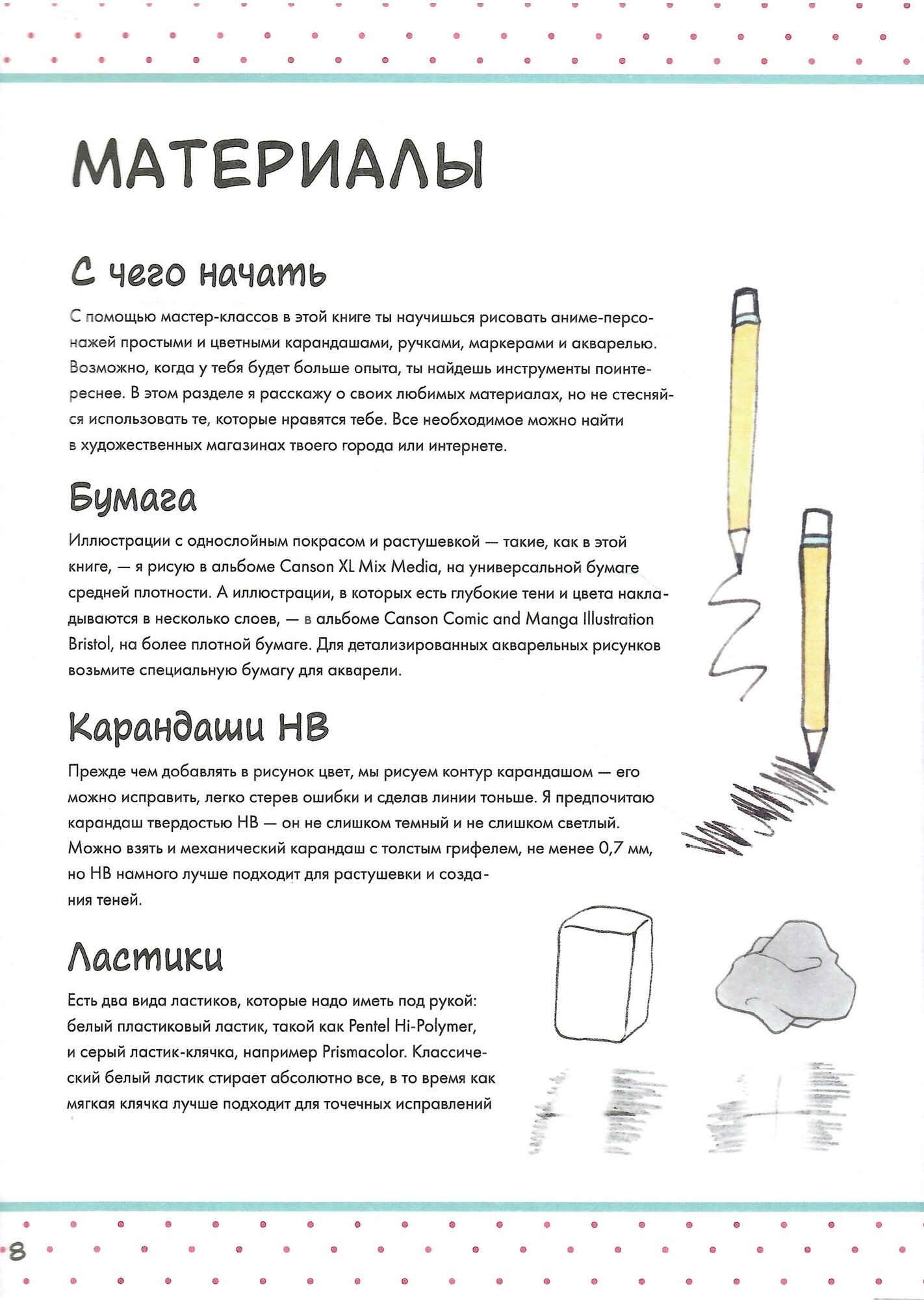 Простые пошаговые уроки карандашом, маркерами, цветными карандашами и акварелью. Мало теории. Главный плюс книги, что написана японским автором, а значит персонажи действительно симпатичные и в исконно анимешном стиле, а не как у Кристофера Харта и других не японских авторов, у которых пропорции лиц слегка искажены.