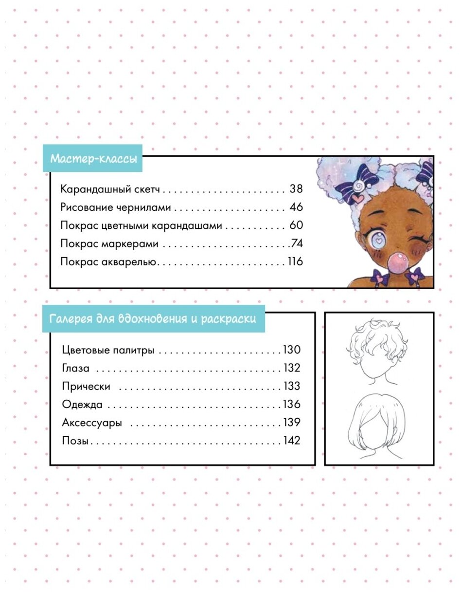 - найдешь 10+ идей причесок, одежды, аксессуаров и поз для оригинального персонажа.