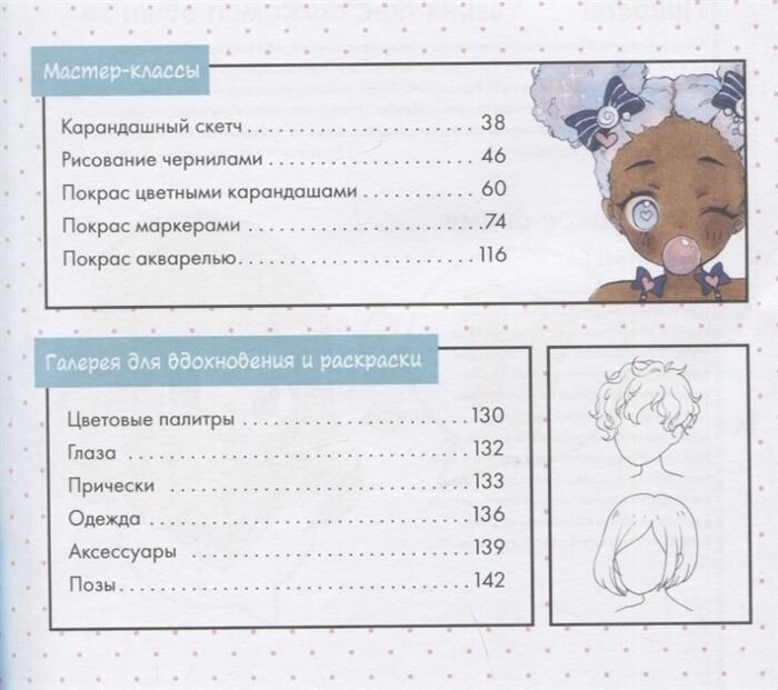 Меня она подкупила большим количеством примеров рисовки (лица,фигуры,способы раскраски)Как обучалка рисовки она не очень: все только в общих чертах,что и как рисовать придется додумывать самостоятельно,как это делала автор в свое время.Для тех,кто хочет учиться,эта книга не будет лишней.Цена действительно не маленькая,но ведь это и не брошюрка какая-нибудь.