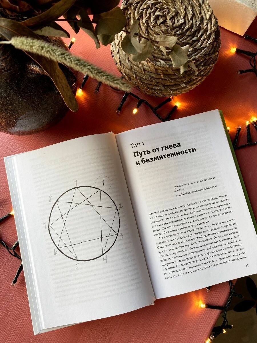 «Эннеаграмма – сложный и многогранный символ, который соотносится с разными системами познания, в том числе психологией, космологией и математикой. Он лежит в основе высокоточной типологии, которая четко описывает девять типов личностей и служит смысловой базой для понимания человеческого эго и планирования дальнейшего роста.»